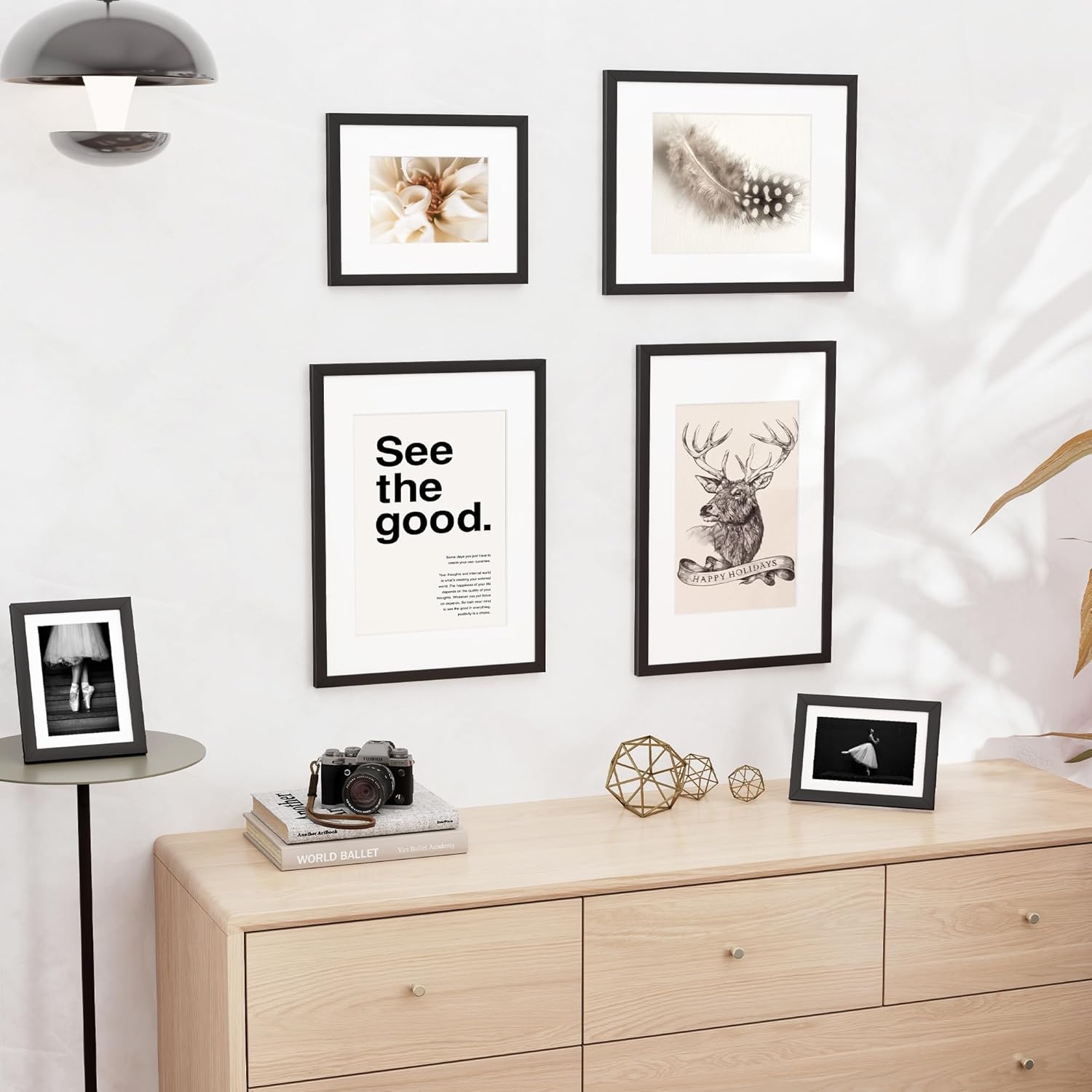 11x14 inch Picture Frame, 11x14 Photo Frames with 8x10 Removable Mat - High Definition Plexiglass - Vertical and Horizontal Display - Wall Hanging Frame - Black, 12 Pack