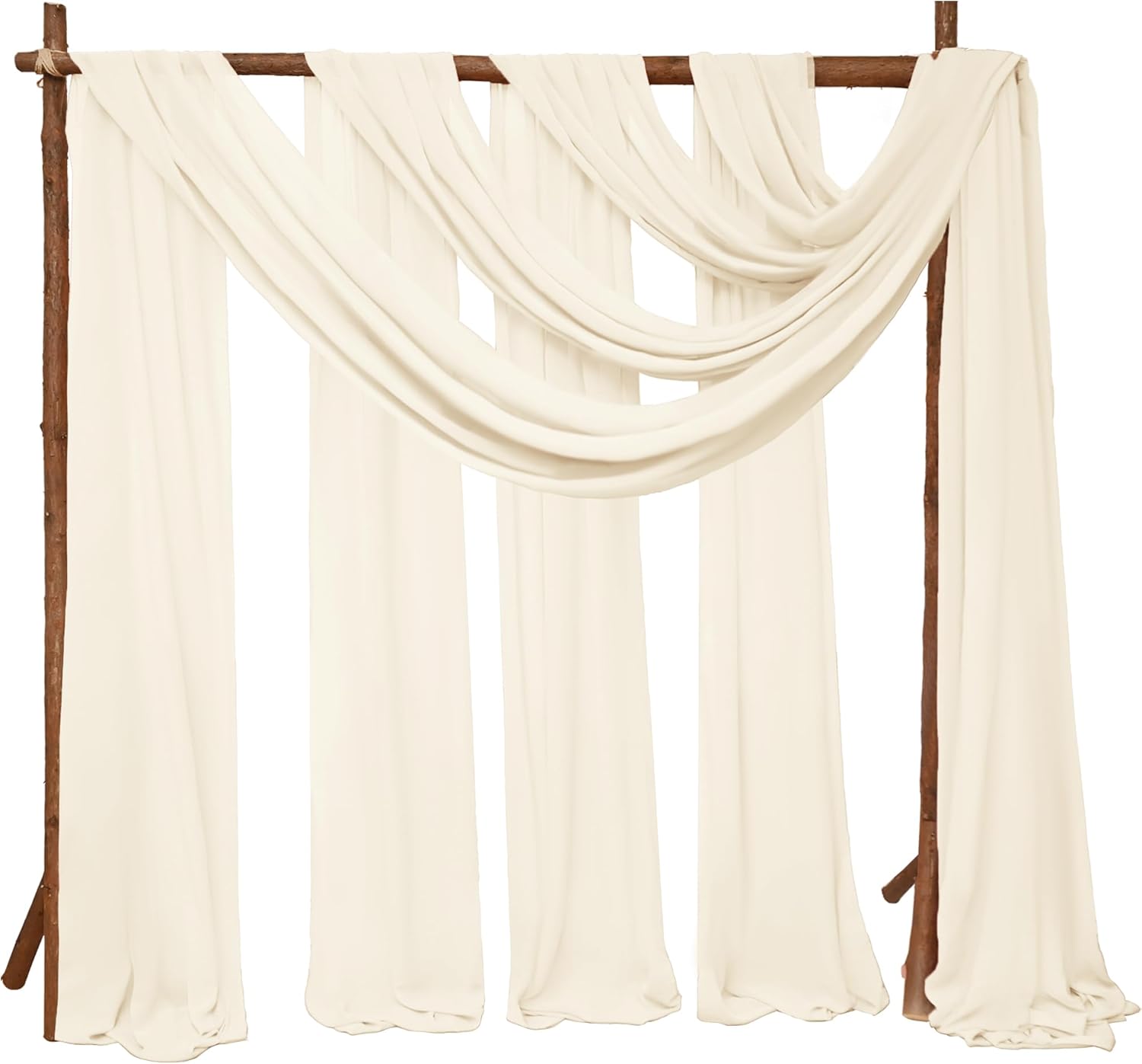 8 Panels Wedding Arch Draping Fabric 28" x 20Ft Wedding Arch Drapes Chiffon Fabric Drape Sheer Backdrop Curtain for Weddings Party Swag Ceremony Birthday Arbor Drapery Reception Ceiling Décor(Ivory)