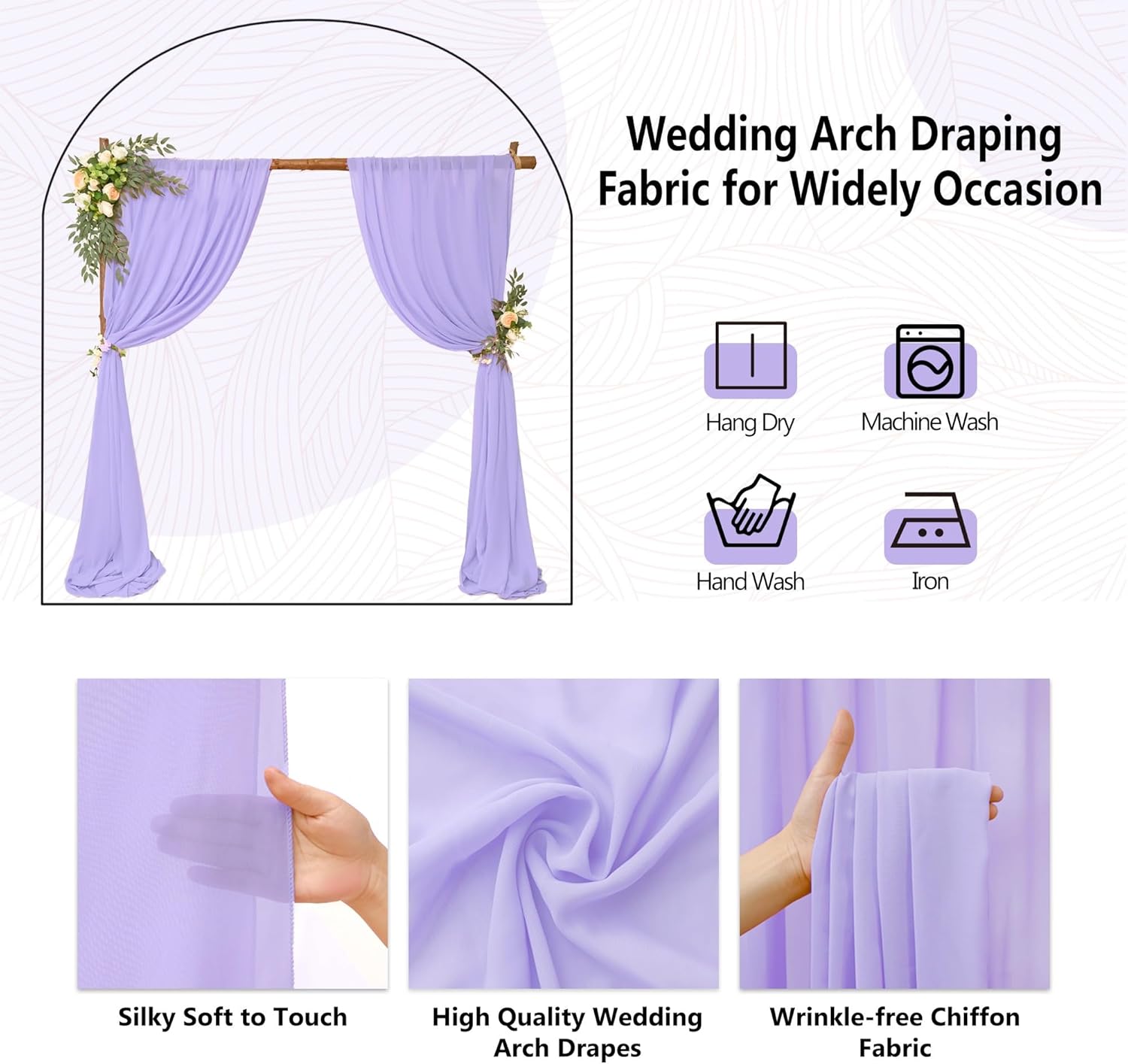 - 【Easy to Clean and Care】To keep the texture of the wedding arches, it is recommended that machine wash in a laundry bag or hand wash in cold water with mild detergent. With a steam iron, wrinkles will disappear and can be used repeatedly. To keep the wedding arch drapery for long time use, no bleach, lay flat or hang to dry. Please note that there may be a little color difference due to the difference in the display. Any problem, please feel free to tell us, we will do our best to help.