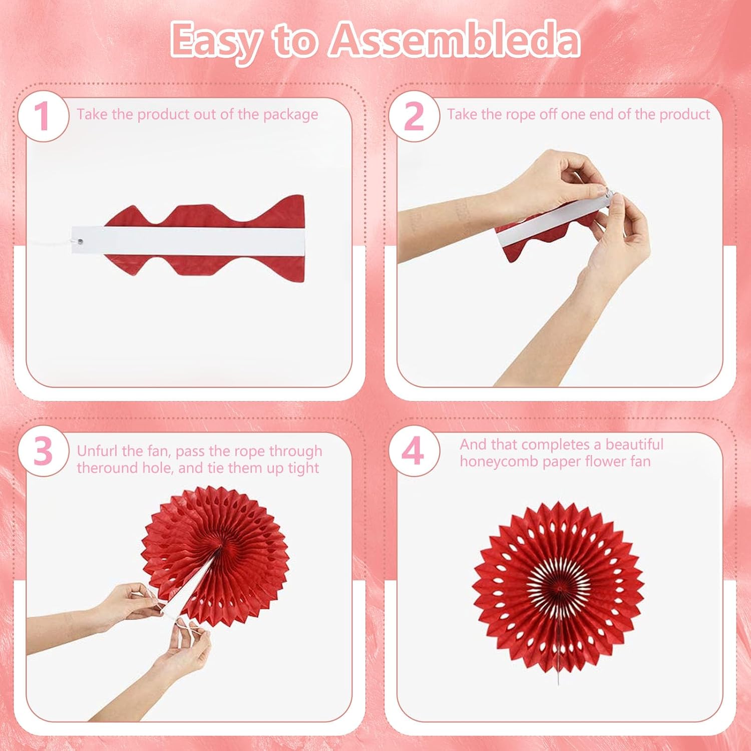 - 【Hanging paper fan set】Paper fan set includes 20 paper fans of different sizes, among which the paper flower fan size is 14 inches * 3, 12 inches * 5, 8 inches * 6, and 6 inches*6.