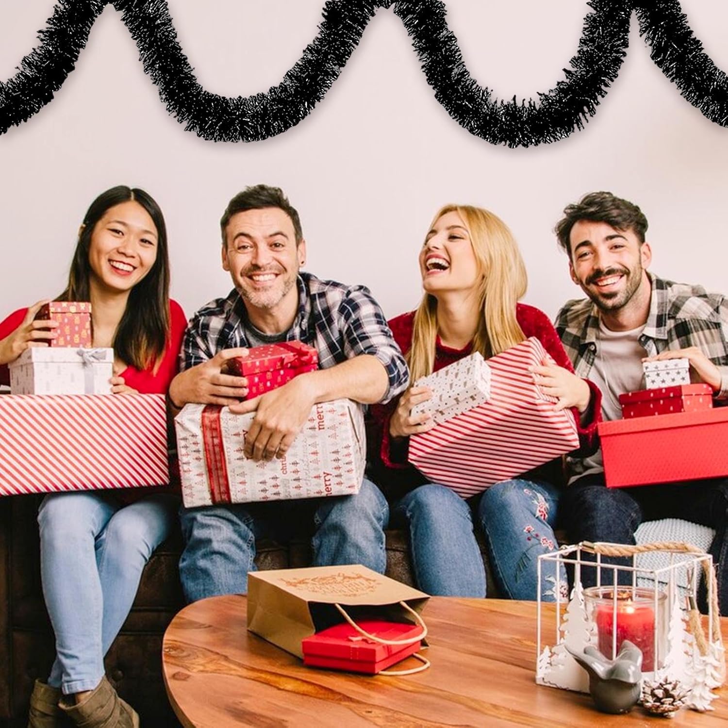 - Applicable Occasions: with exquisite workmanship, these glitter tinsel twist garlands can be hung on your walls, trees, or others; So you can use them to decorate your photo frames, garlands, gift wrapping, decorating tables, Christmas trees, home stairs, and more. This shiny tinsel Foil Fringes garlands is also Perfect for parade floats, as shiny tassel banner, use to run along the top of a backdrop or anywhere you want to add shimmer.
