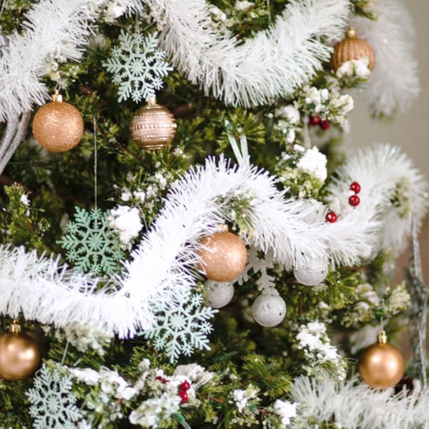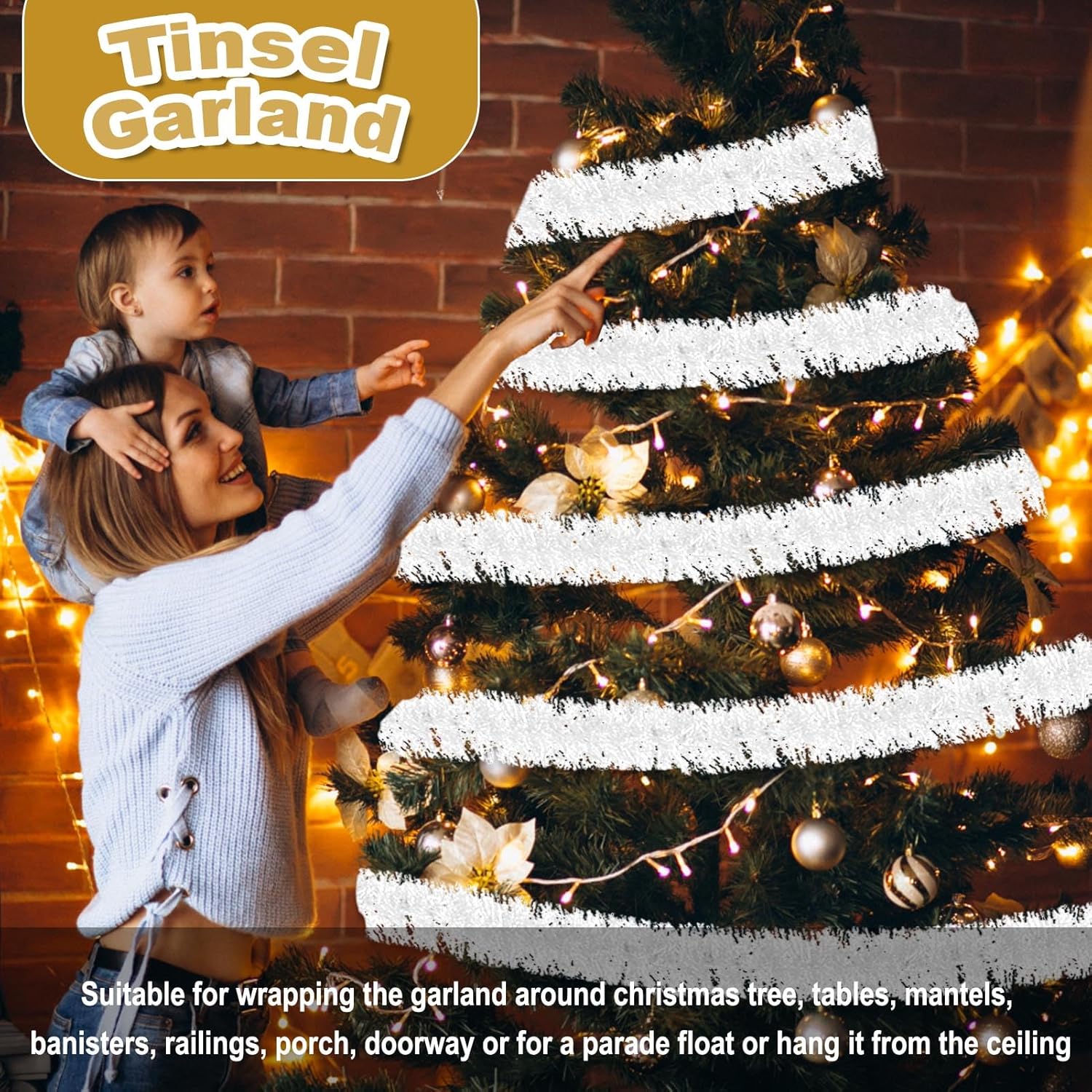 - Quality Material: tree garland Christmas decoration is made from quality PET material that ensures durability and long lasting use; This lightweight yet waterproof tinsel offers you a gorgeous decoration that can provide you with a comfortable decorating experience.