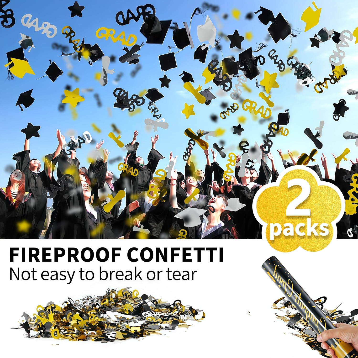- 🎉【EXCLUSIVE DESIGN FOR GRADUATION】Celebrate graduation milestones with confetti shaped like diplomas,caps,GRAD and stars!Each popper features Graduation theme packaging to match your prom nights to diploma ceremonies, perfect for photo shoots and ceremonies 2025.