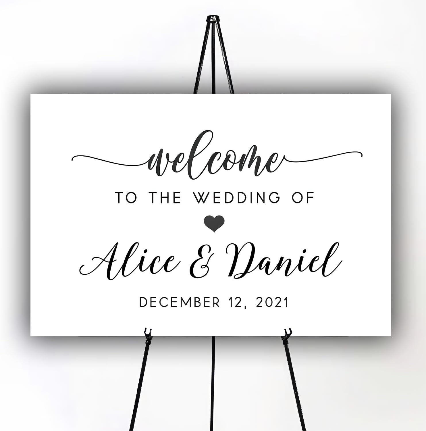 - Welcome your guests to your wedding in a warm and memorable way with Personalized Plastic Wedding Welcome Sign. This product is designed to create personal interest and an impressive welcome for everyone attending this memorable event.