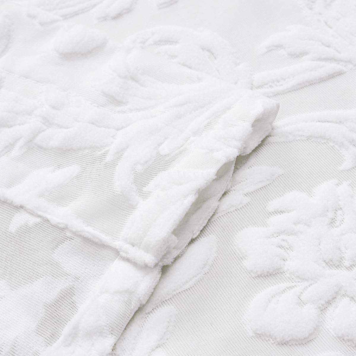 Curtains Sheer White Curtain Panels Boho Farmhouse Drapes with Vintage Floral Pattern 45" Short Length Rod Pocket for Bedroom Living Room Windows French Elegance 3D Relief, Set of 2 (52" Wide Each)
