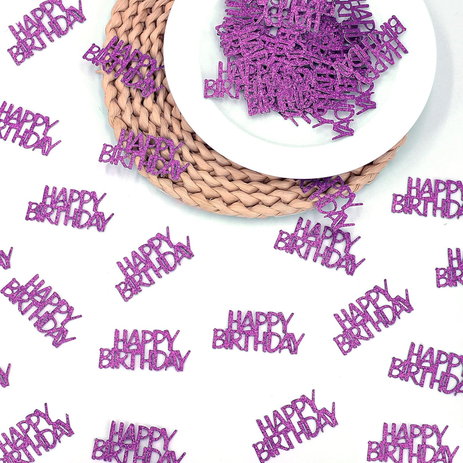 - Purple happy birthday table decoration.The glittery birthday confetti is a perfect addition to the birthday parties for adult female or kids girls,baby one year old birthday party decor,baby shower or anniversary party,just scattering on tables.