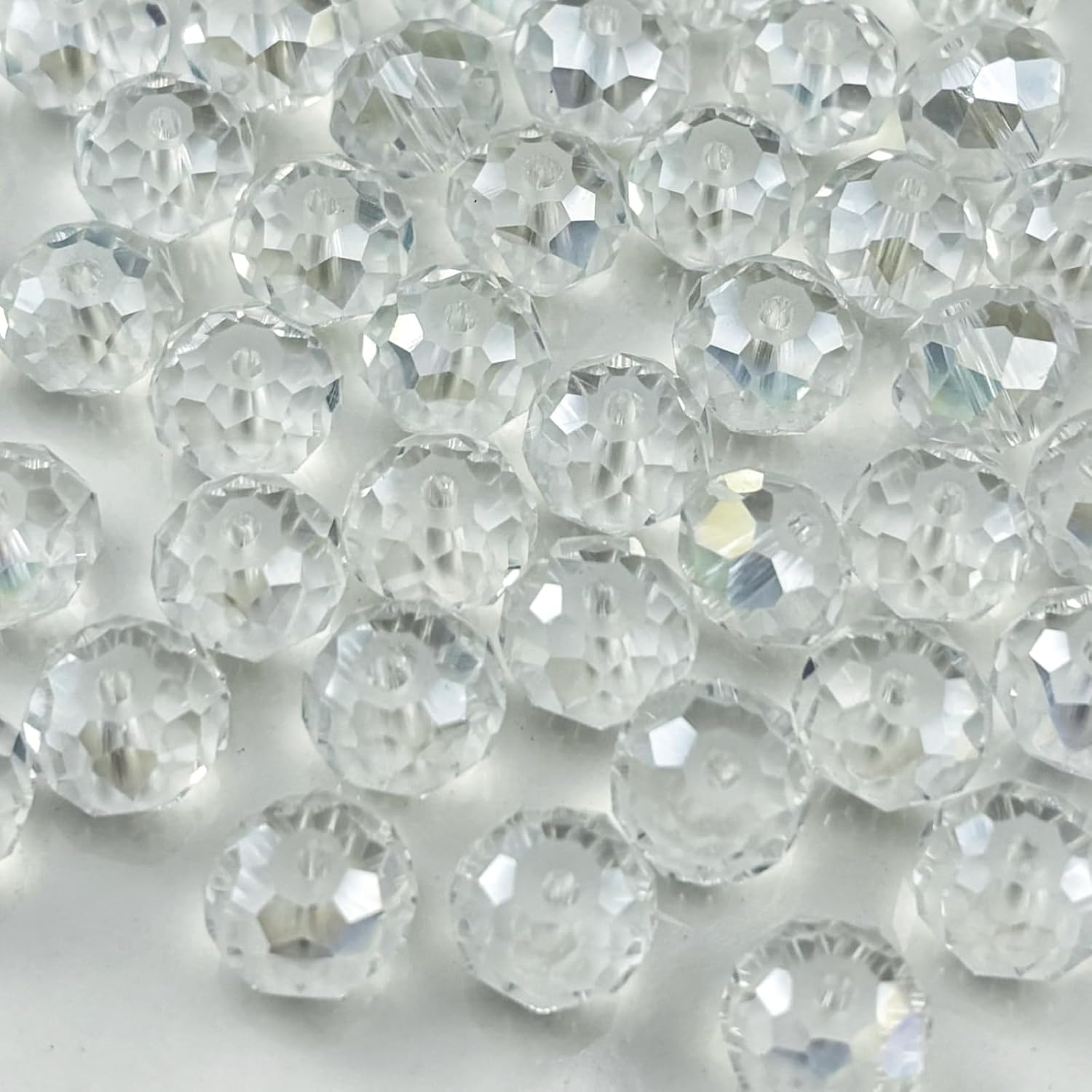 50pcs 10mm Crystal Glass Beads for Crafts Faceted Rondelle Glass Beads for Jewelry Making Crystal Spacer Beads for Necklaces Bracelets Earrings DIY Craft(Transparent AB)