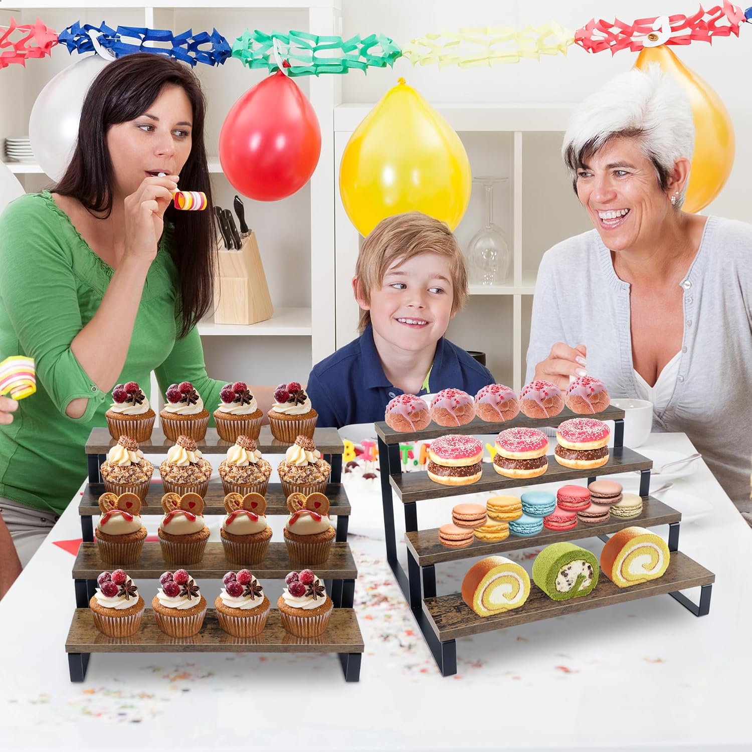 - 【Durable & Spacious Tiers】 Crafted with durability, this wood tiered display stand accommodates various treats like cologne and pastries. The spacious tiers provide ample room for creative and inviting cupcake displays, enhancing any dessert table