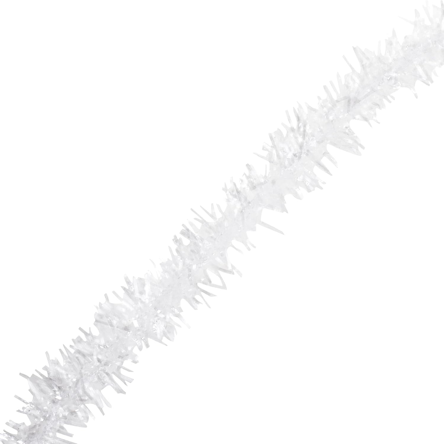 - Long Bulk Reusable Christmas Garland Tinsel Roll: The 0.75” wide twisted white garland for Christmas tree is 30 feet in length. Great for living rooms, bedrooms, schools, & supermarkets, the Christmas tree white tinsel also pairs well with string lights.