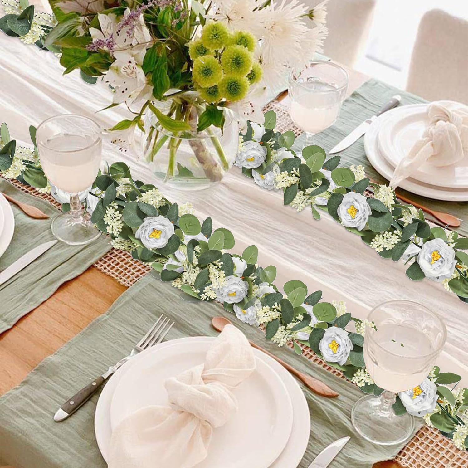 - 🍀🍀【Rose Garland Decor】: The handmade artificial Eucalyptus garland decorations are deal for any wedding or home decoration, such as bedrooms, living rooms, dining table, arches, chairs, backgrounds, corridors, backgrounds, hung on both sides of doors or wedding arches etc. DIY event center. Whether you want to create a romantic atmosphere or add beauty to your life, this fake rose flower vine can blend perfectly.