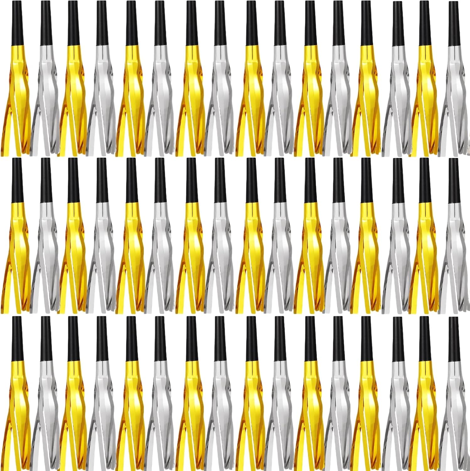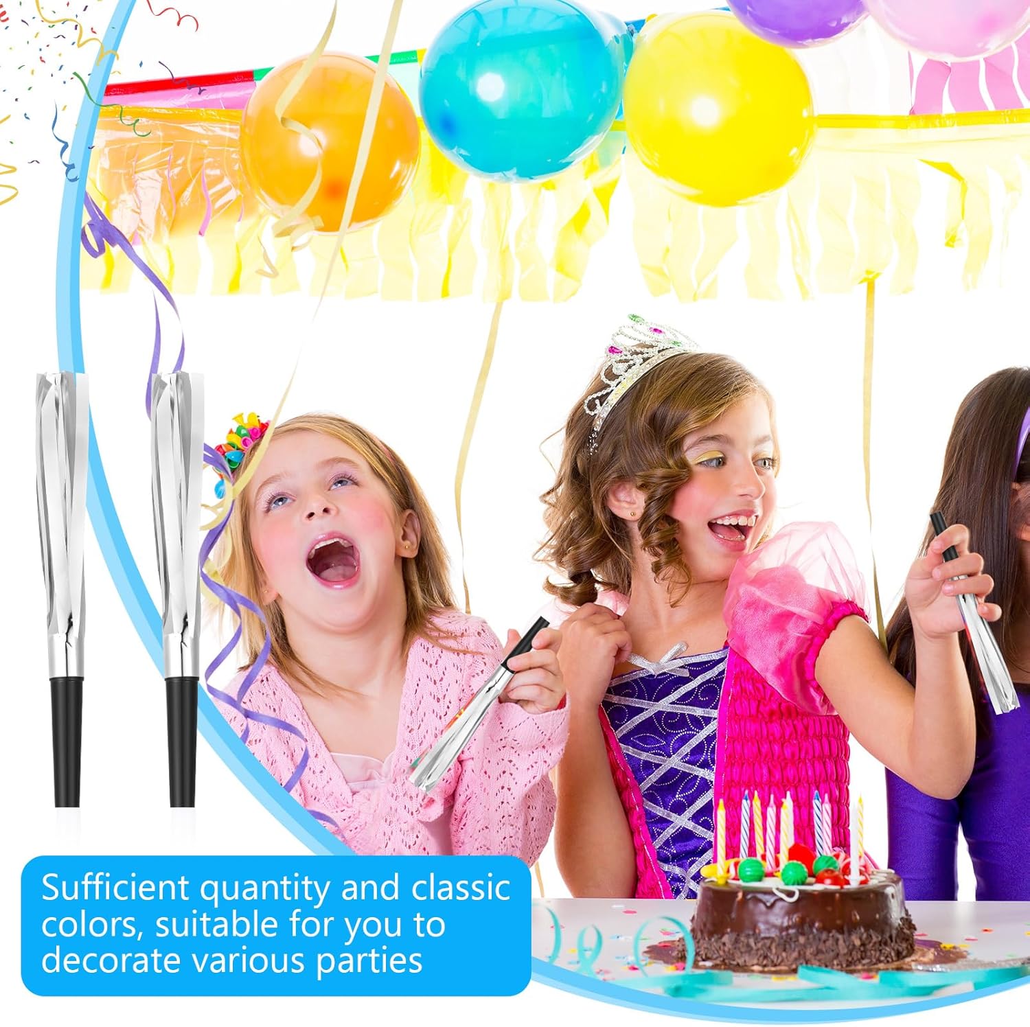 - Fun Party Favors: Set of 48 metallic fringed noise makers in gold and silver colors, perfect for celebrations like New Year's Eve, birthdays, and baby showers.