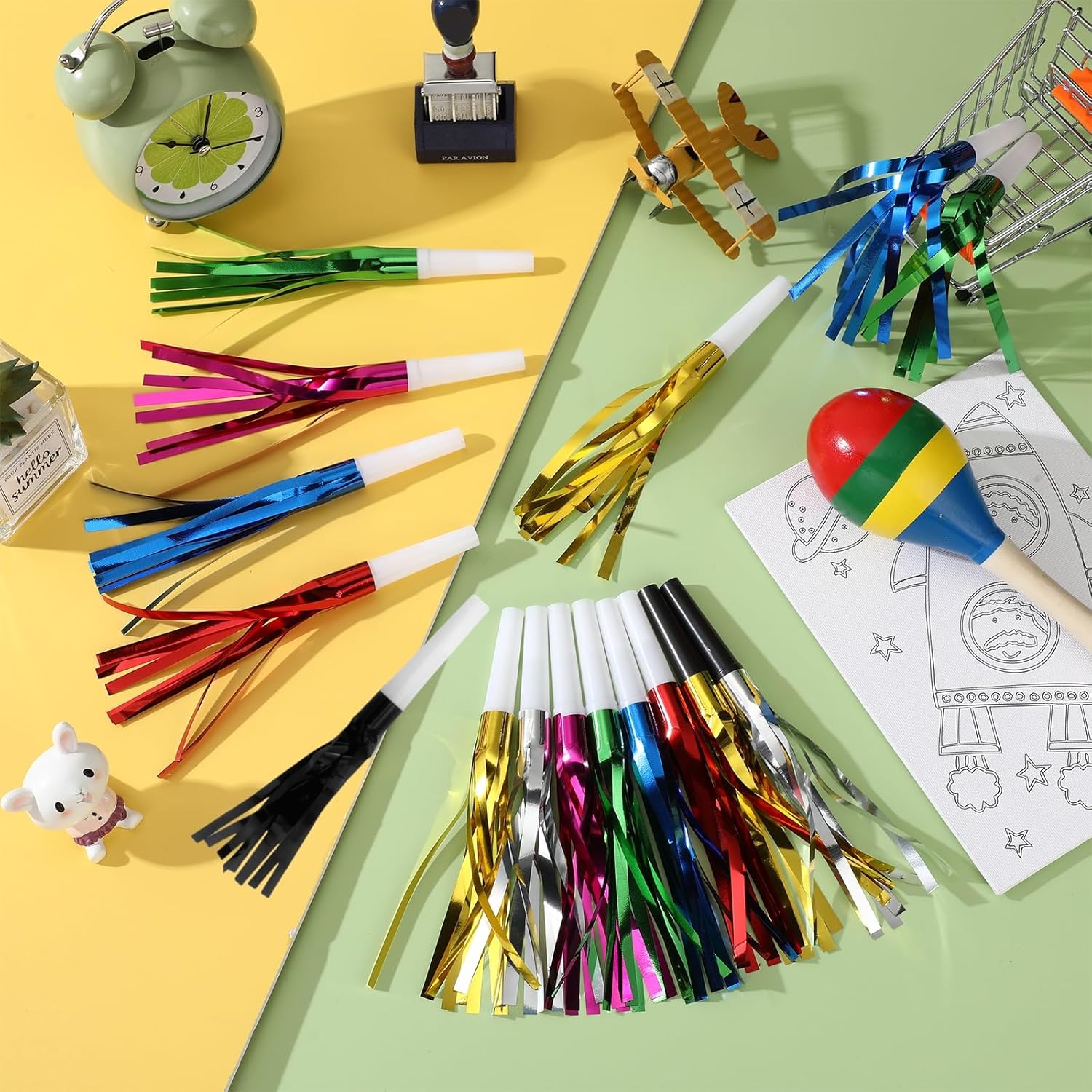 - Versatile: Suitable for all ages, these noise makers can be enjoyed by kids and adults alike, making them a great addition to any party favor bag. Ideal for New Year's Eve, baby showers, kids' birthdays, and other festive occasions.
