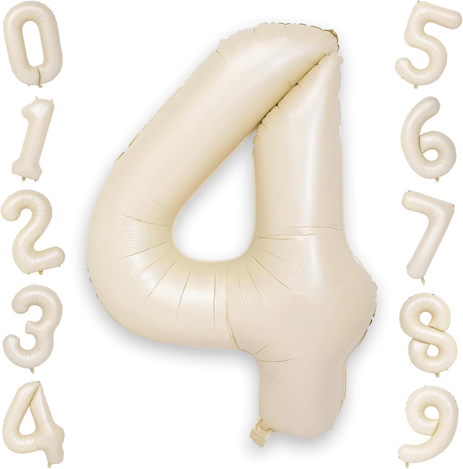- Cream White Number 4 Balloon 40 Inch: Includes 1pc beige "4" balloon and a straw for easy inflation and deflation. This elegant, neutral digital helium balloon is perfect for birthdays, anniversaries, or special occasions like a 4th, 14th, 24th, or 40th celebration. Mix and match with other numbers and letters to create a personalized, memorable party setup!