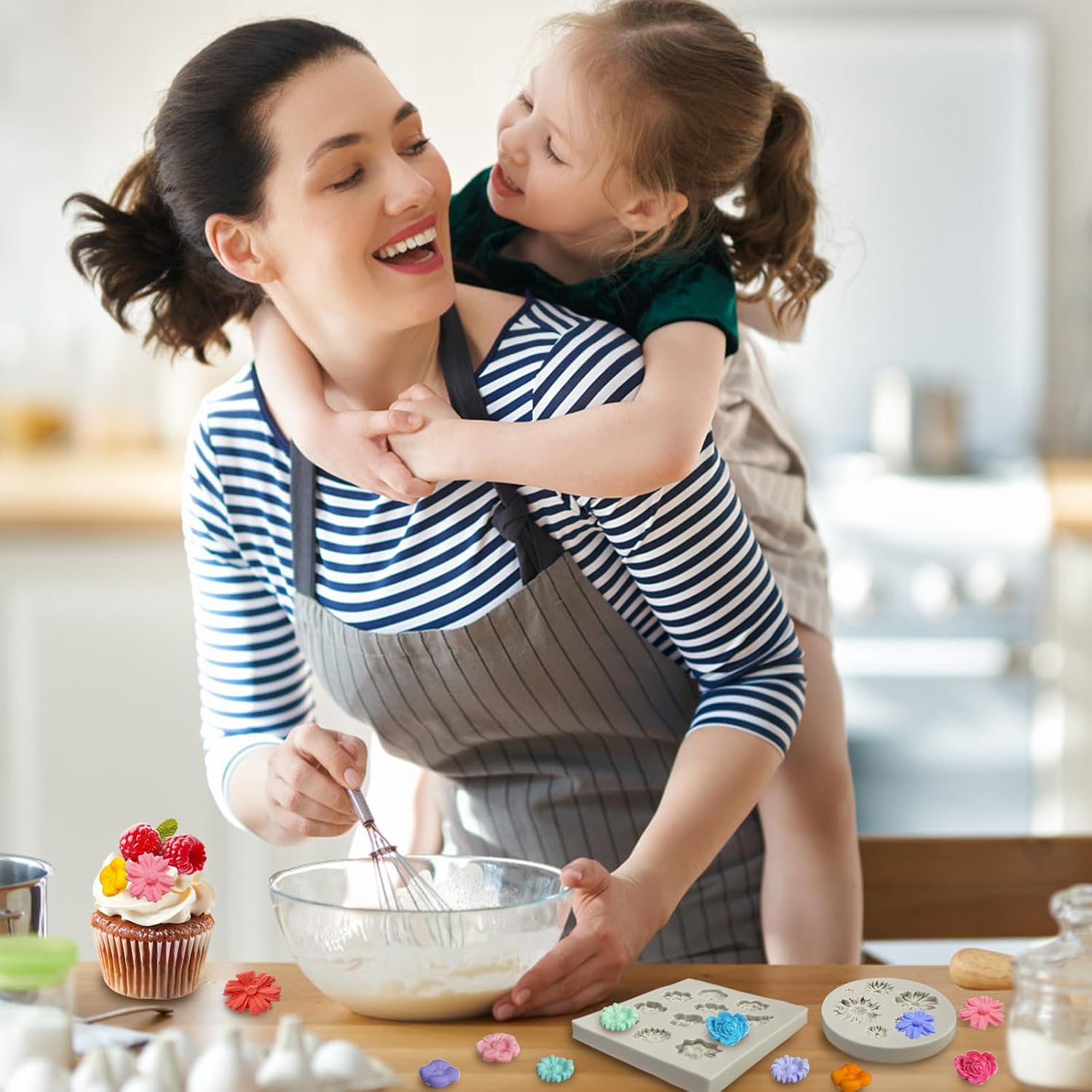 - Complete Flower Silicone Mold Set: This set comes with 2 uniquely designed flower silicone molds, including daisy and rose patterns. Perfect for creating stunning decorations for cakes, cupcakes, chocolates, clay and crafts