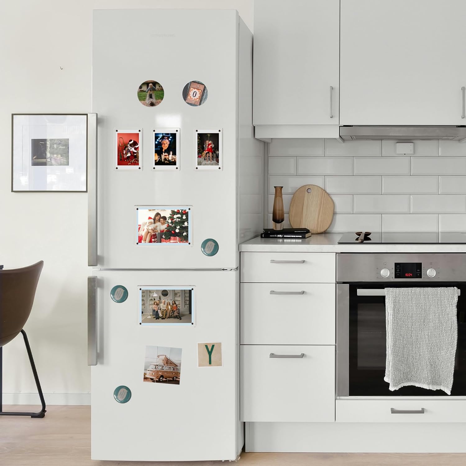 - Easy to Replace Photos: Clear magnetic photo frames allow you to easily display photos on the refrigerator and replace them at any time; When installing the fridge magnets frame, please select the placement location first, and then stick it to the designated position on the refrigerator. Do not move it on the refrigerator