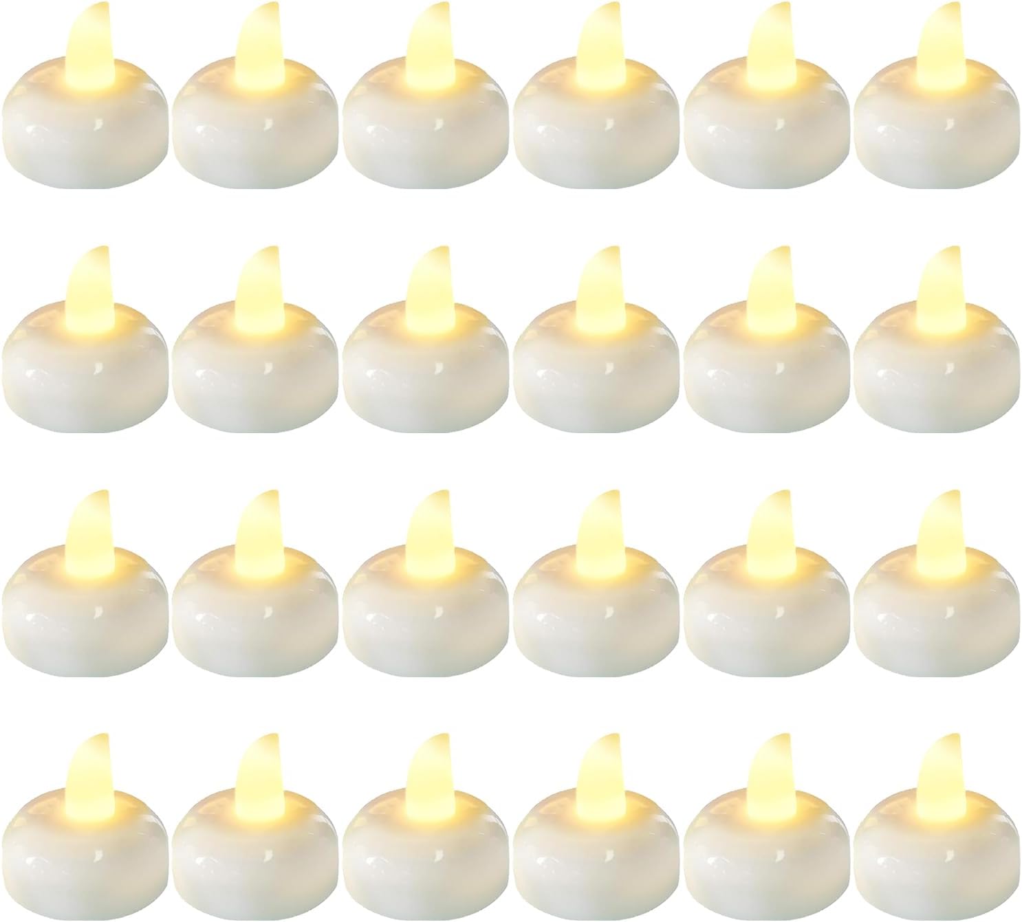 - 1. Generous Quantity for Impactful Decor Receive a pack of 24pcs of these warm white flameless LED floating candles. This ample quantity allows you to create a truly captivating display. Whether you're decorating a large pool for a grand outdoor party or multiple small bowls for an intimate wedding reception, having 24 candles ensures you can achieve a lush and enchanting aquatic ambiance.