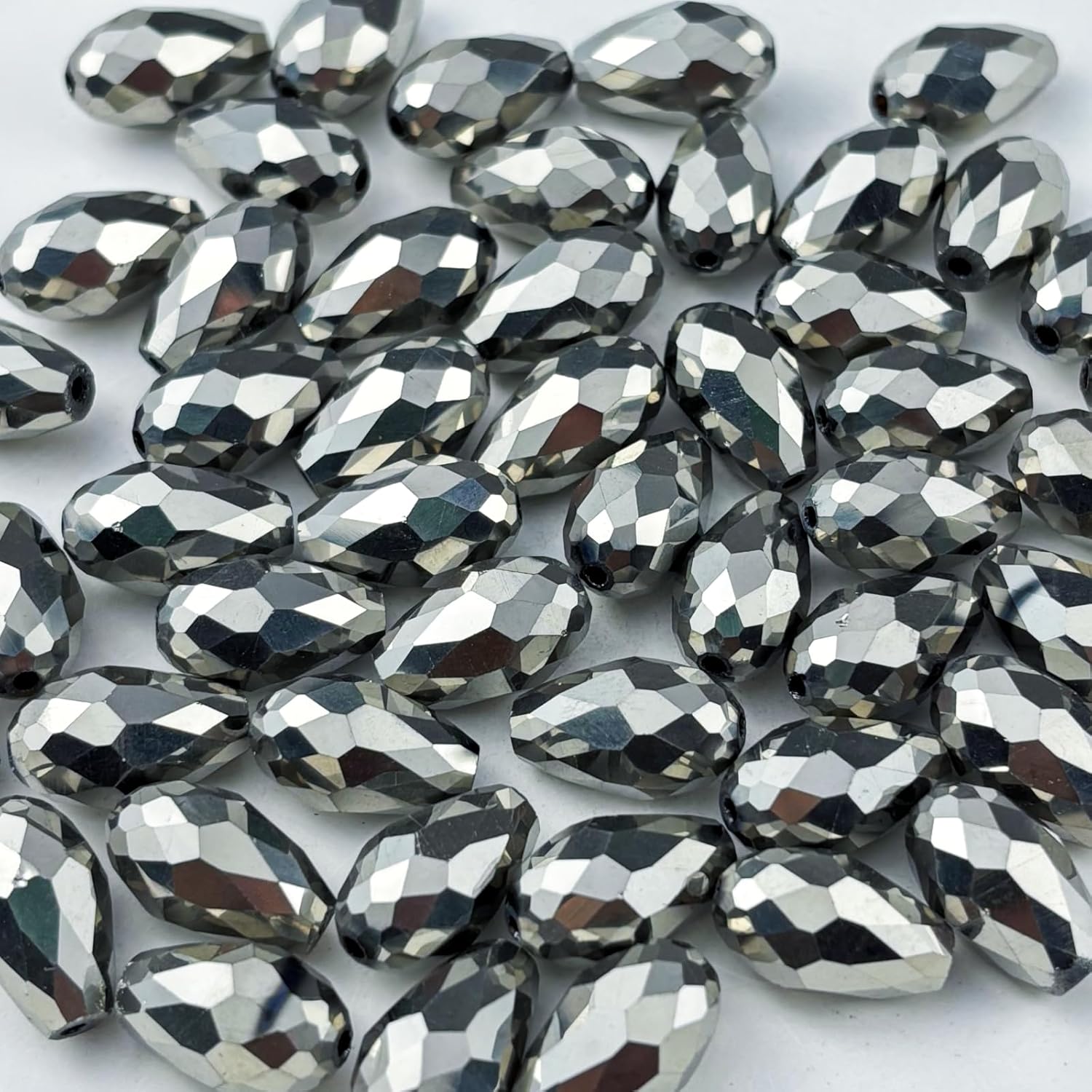 - DIY: Designed with an elegant teardrop shape featuring multiple facets and a central drilled hole, these faceted teardrop beads are sutable for various jewelry projects. With our multifaceted crystal glass beads, you can create beading chains tailored to your personal style—simply thread your string cord through the holes and pair them with your favorite accessories for DIY creations.