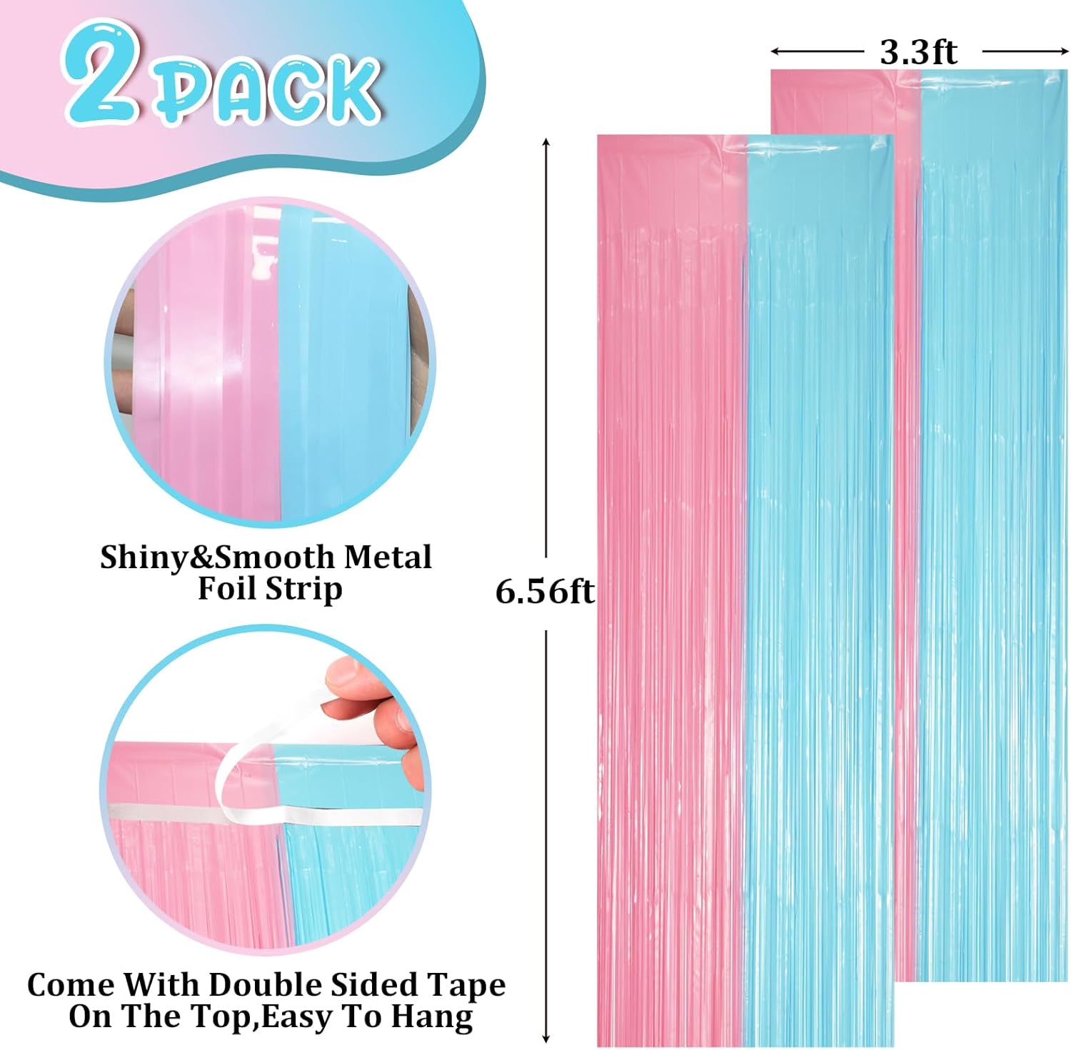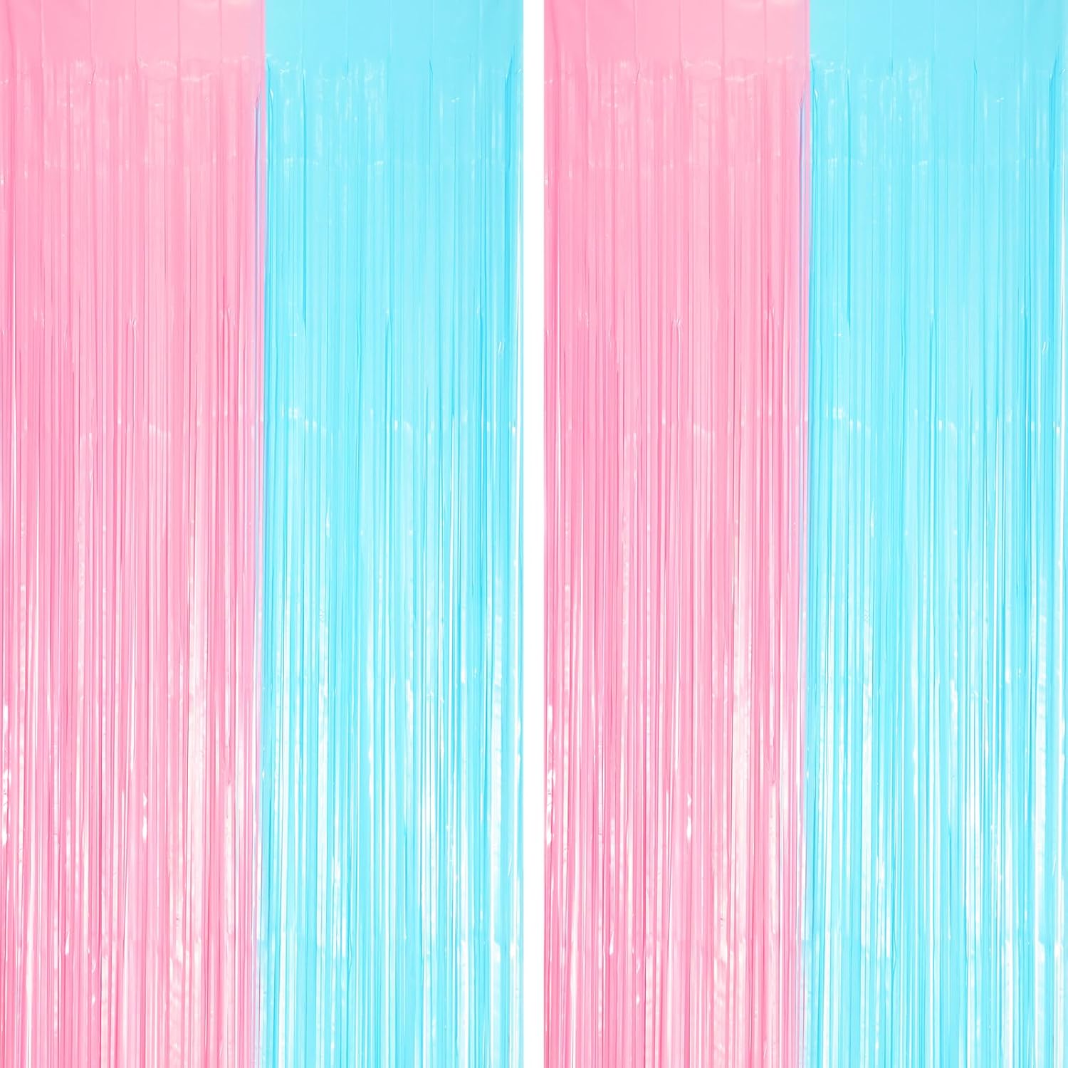 - Stunning Decorative Set: You'll receive 2 pcs gender reveal foil fringe backdrop curtains, each measuring 3.28 ft (wide)×6.56 ft (drop). Enough length foil fringe curtains backdrops are perfect for the door or wall to create an impressive decoration