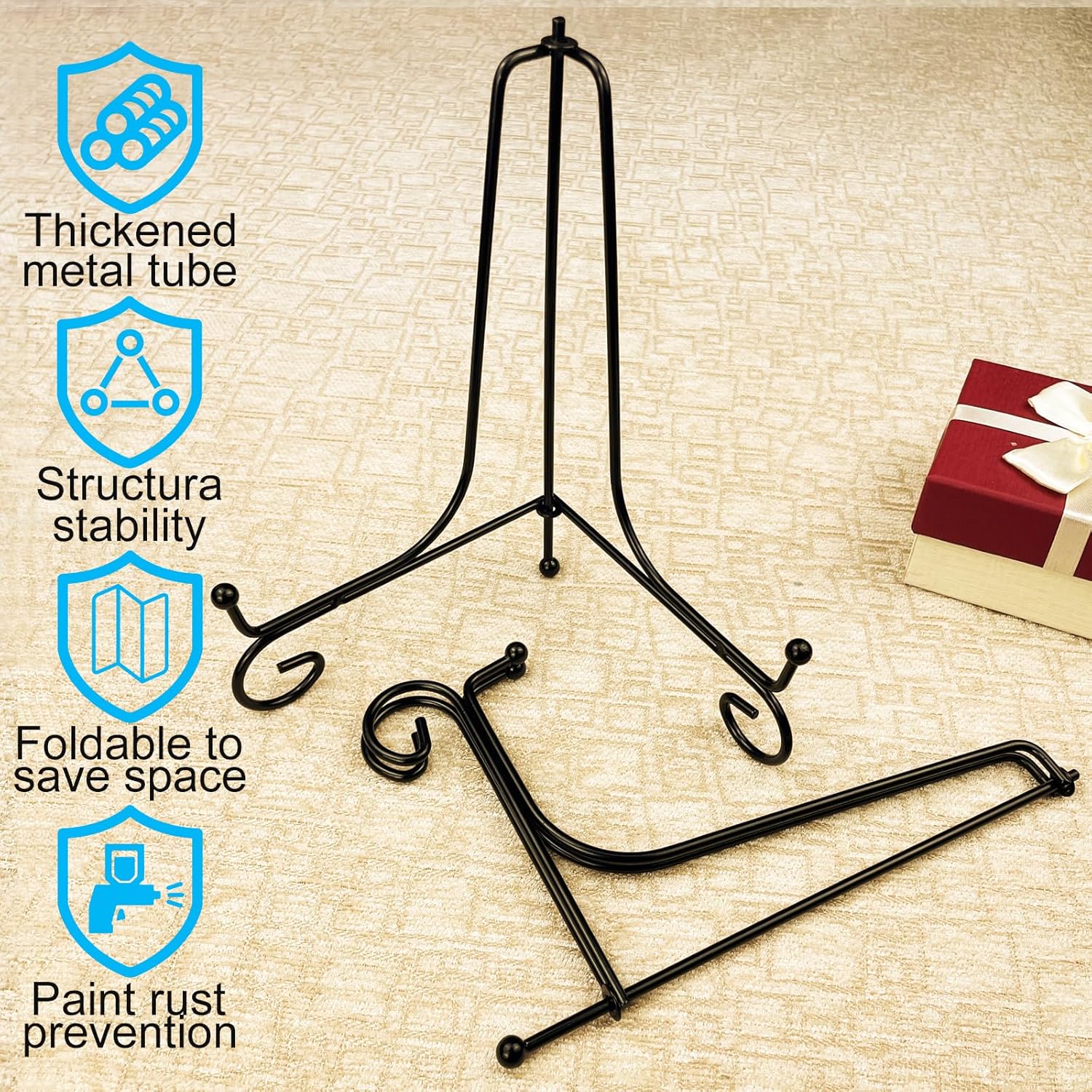 4PCS Premium Black Iron Plate Stands for Display, 8 Inch, Decorative Solid Metal Plate Holders for Displaying, Mini Easel, Frame, Book, Card, Plaque, Bowl, Picture Stands