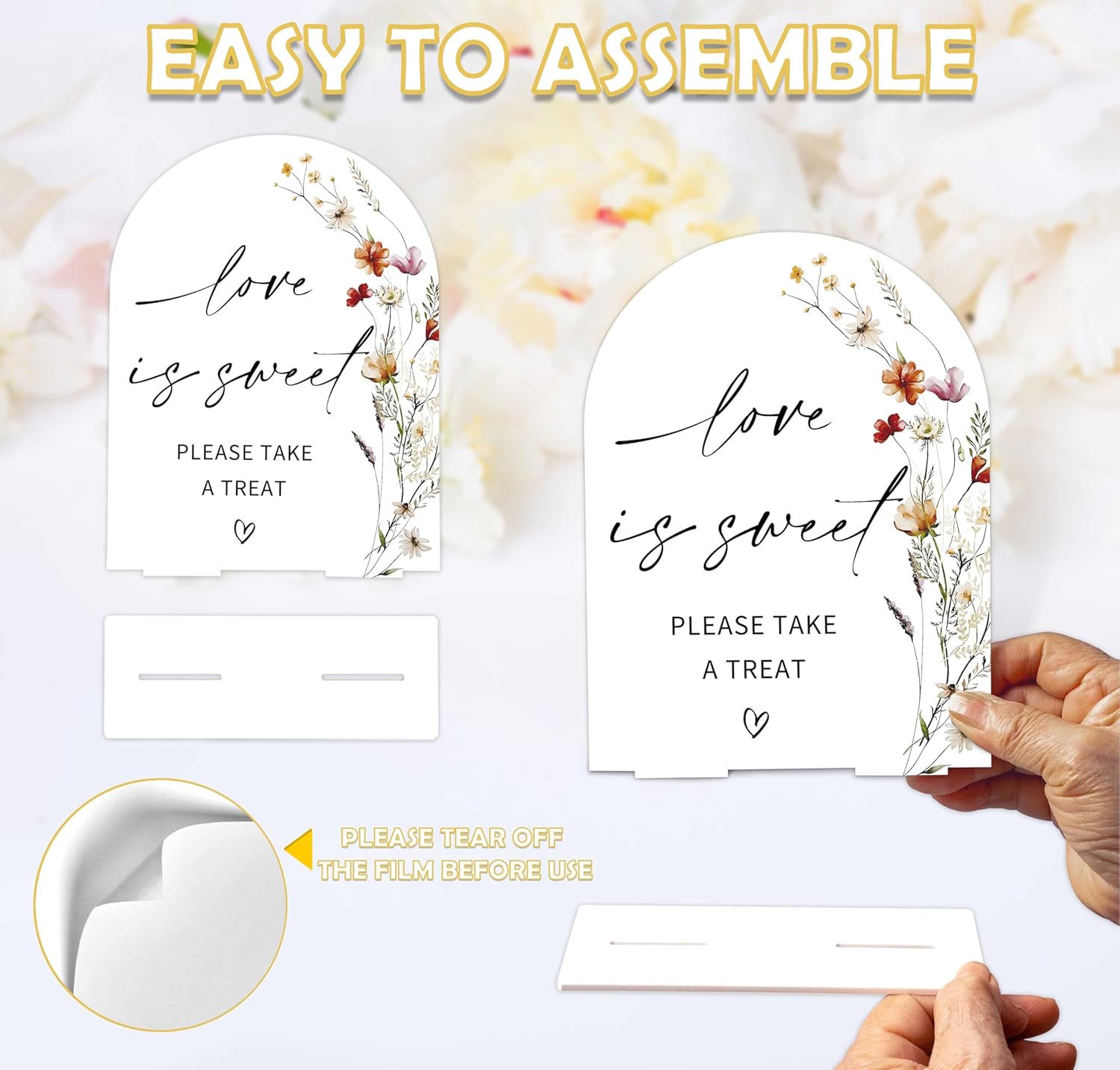 Boho Floral Love is Sweet Sign, 6 x 8 Inch White Arch Acrylic Wedding Sign with Holder, Wedding Sign for Ceremony and Reception, Wedding Decoration, Wedding Supplies - BX07