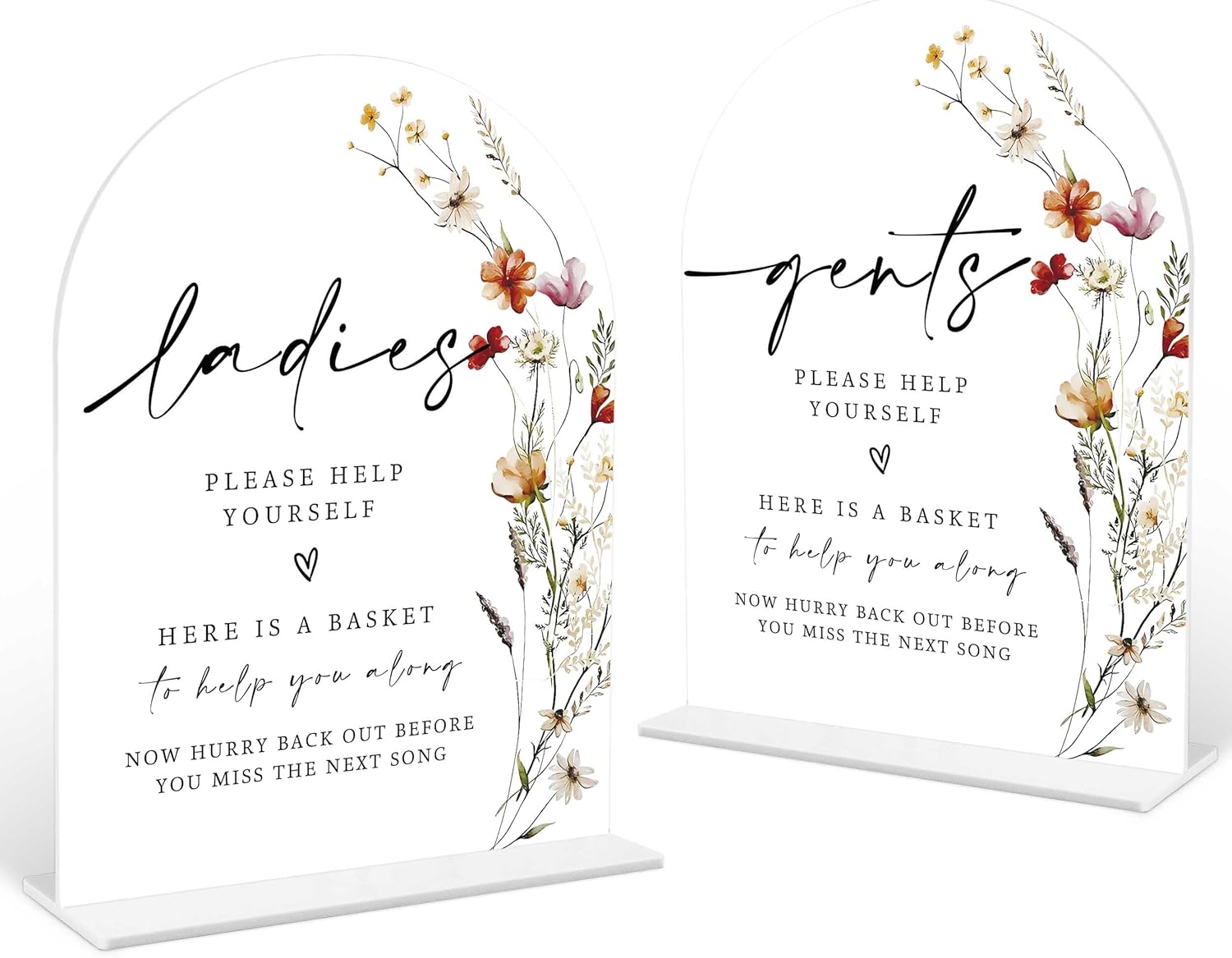 2 Pcs Boho Floral Wedding Bathroom Ladies & Gents Signs, 6 x 8 Inch White Arch Acrylic Wedding Sign with Holder, Wedding Sign for Ceremony and Reception, Wedding Decoration, Wedding Supplies - BX32