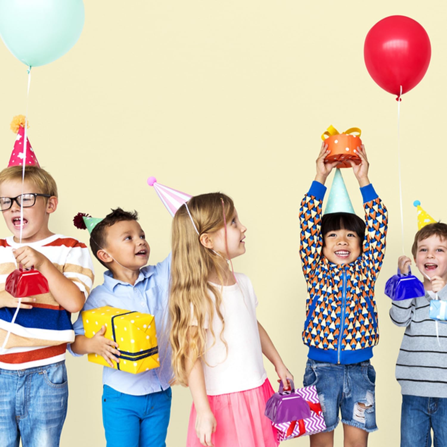 • SIZE: This set includes four small, hand-held cowbells, perfect for easy carrying. Each bell measures approximately 2.87" L x 2.4" W x 2.95" H.