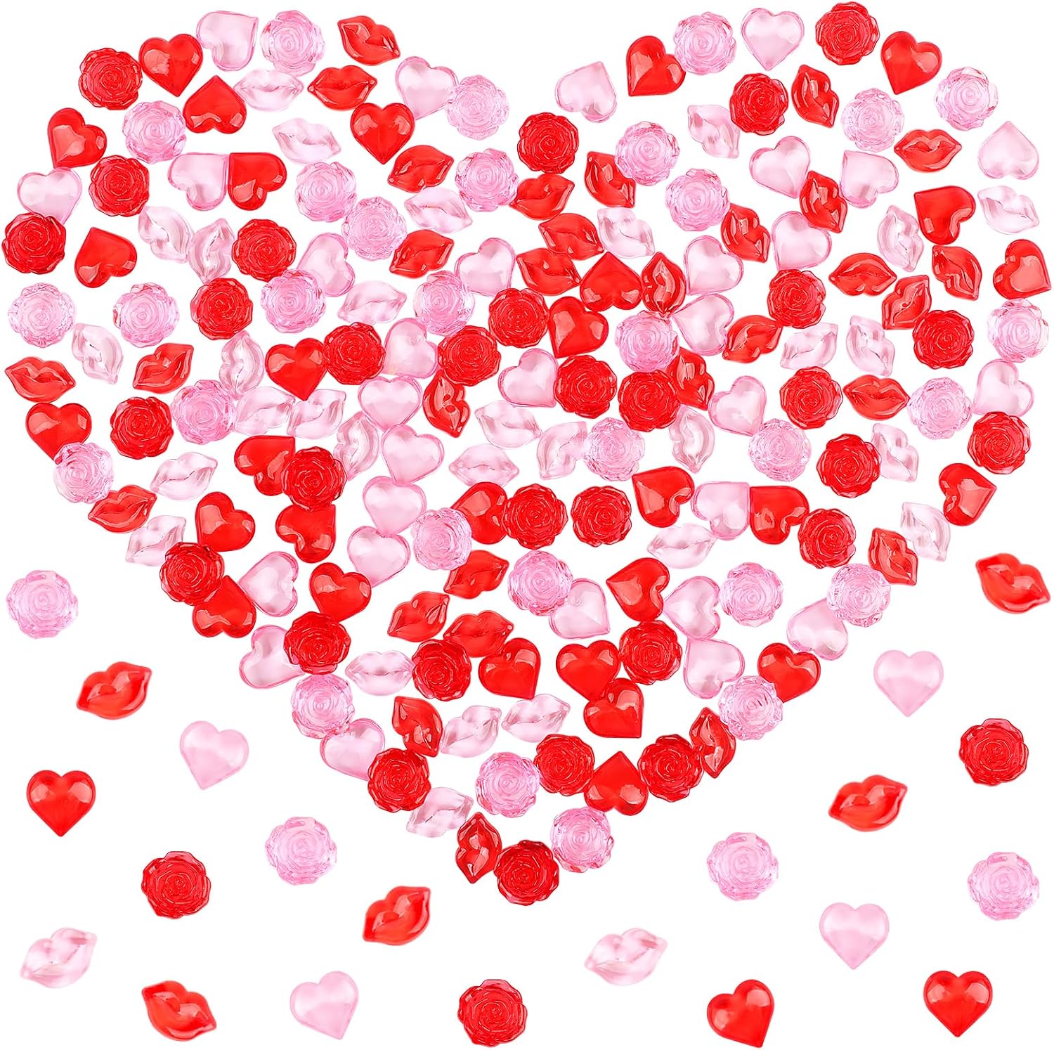 - Valentine's Day Decoration:Lovely red pink flowers,lips,heart gems are suitable for Valentine's Day desktop decoration,sprinkle some on the table or around the candles.Adding radiance and charm to your Valentine's Day and party tables