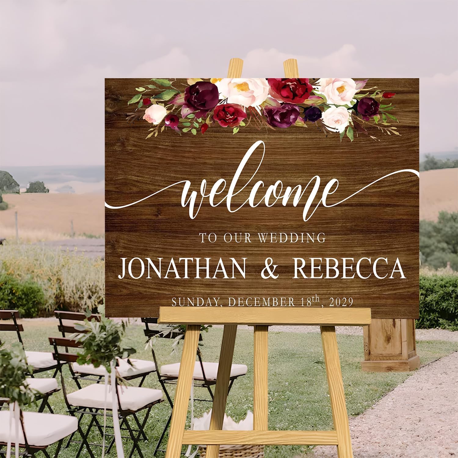 - [Simple to Set Up]: You may also use it indoors for your wedding shower; all you have to do is set up the sign on a desk, easel, stand...