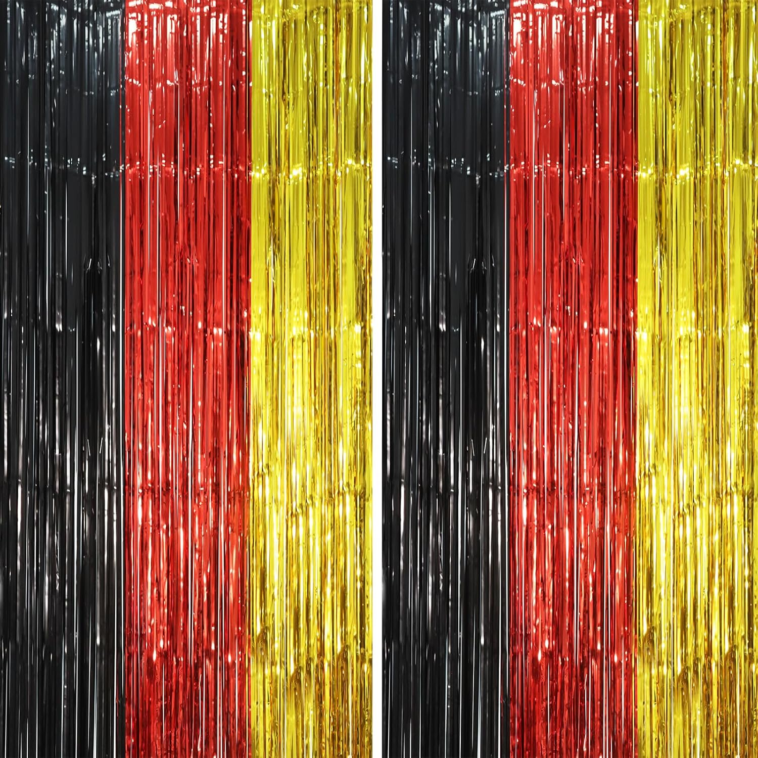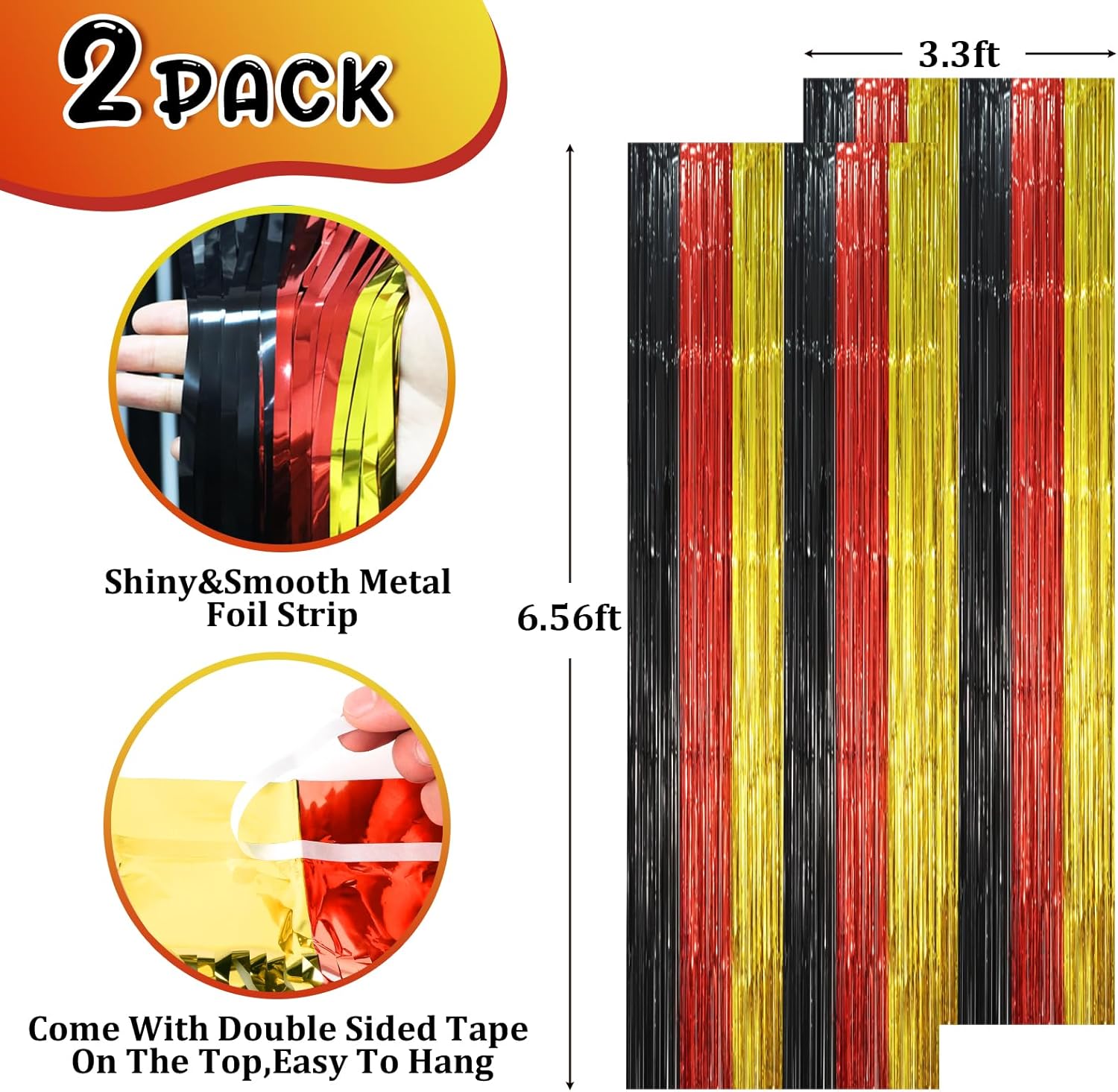 - Stunning Decorative Set: You'll receive 2 pcs red black and gold foil fringe backdrop curtains, each measuring 3.28 ft (wide)×6.56 ft (drop). Enough length foil fringe curtains backdrops are perfect for the door or wall to create an impressive decoration