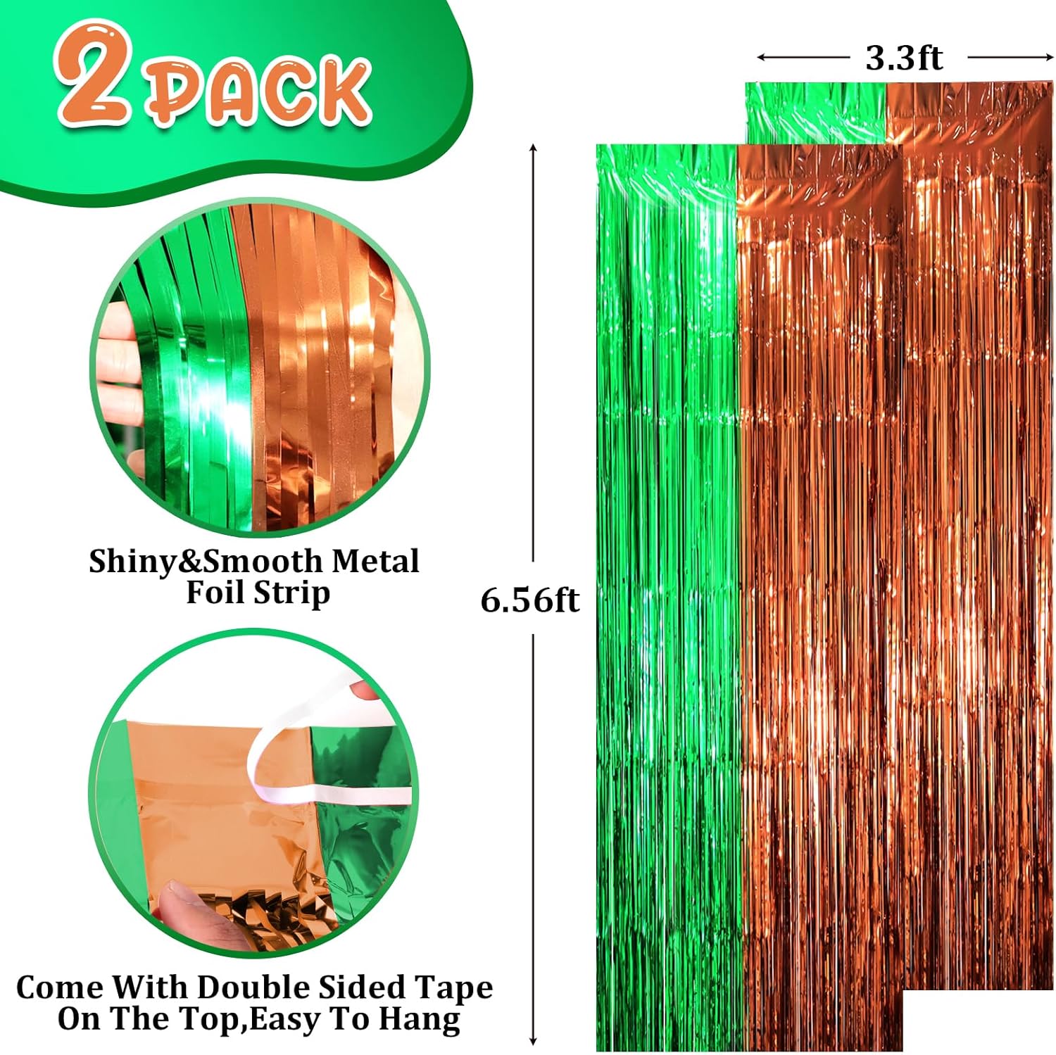 - Stunning Decorative Set: You'll receive 2 pcs green and brown foil fringe backdrop curtains, each measuring 3.28 ft (wide)×6.56 ft (drop). Enough length foil fringe curtains backdrops are perfect for the door or wall to create an impressive decoration
