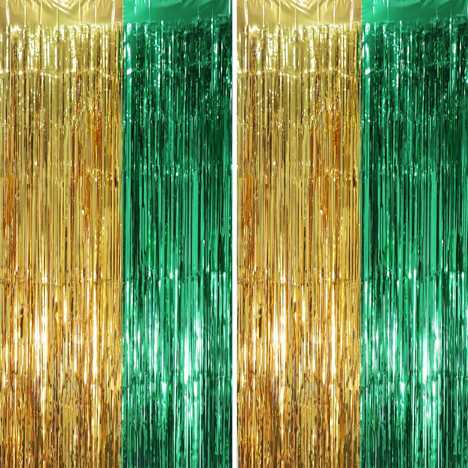 - Stunning Decorative Set: You'll receive 2 pcs gold green foil fringe backdrop curtains, each measuring 3.28 ft (wide)×6.56 ft (drop). Enough length foil fringe curtains backdrops are perfect for the door or wall to create an impressive decoration