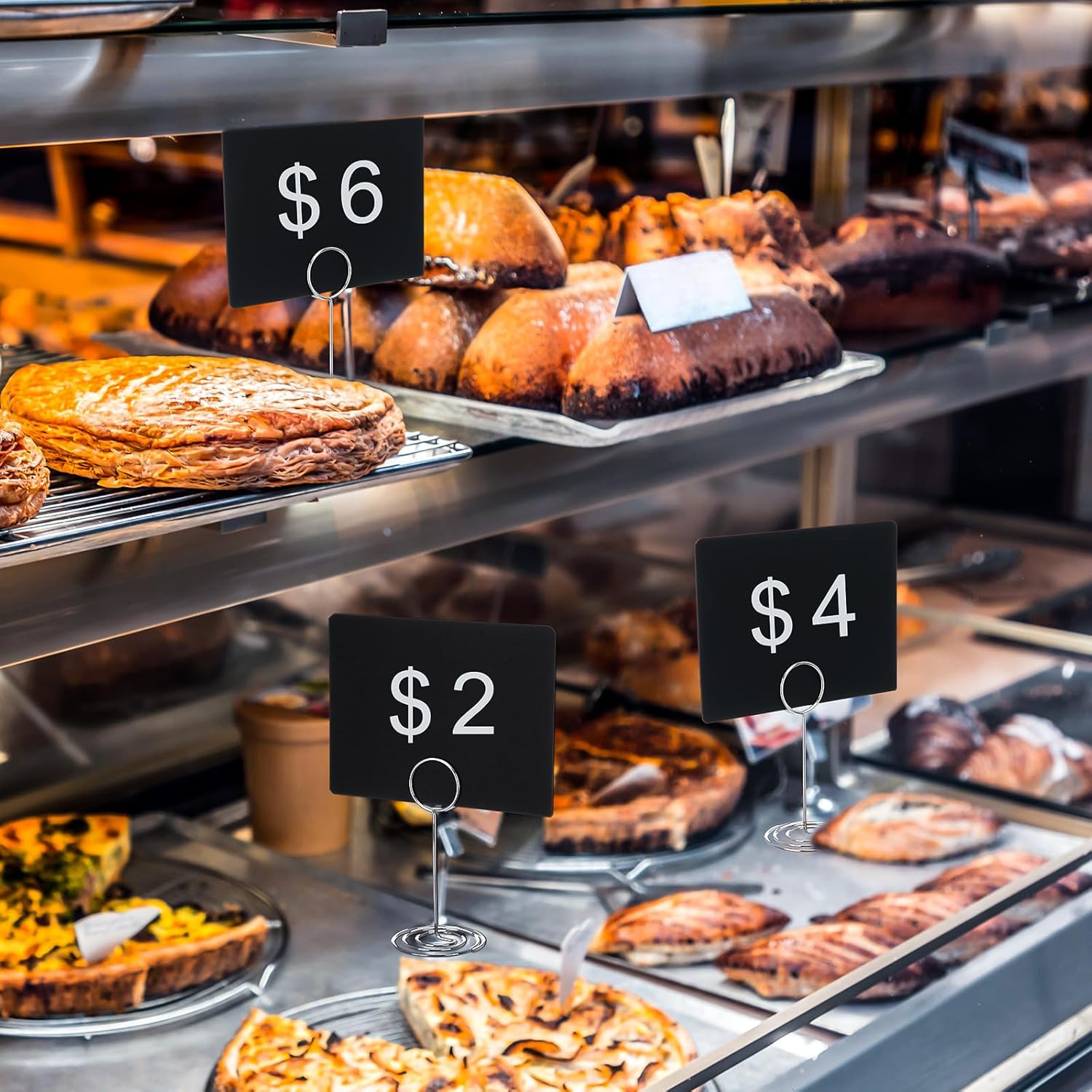 - Easy Usage: the mini chalkboard sign providing a smooth writing surface; You can easily wipe them clean when you need other messages or labels; The metal ring at the top of the wire table stand can easily hold the card, while its wide base ensures it remains stable