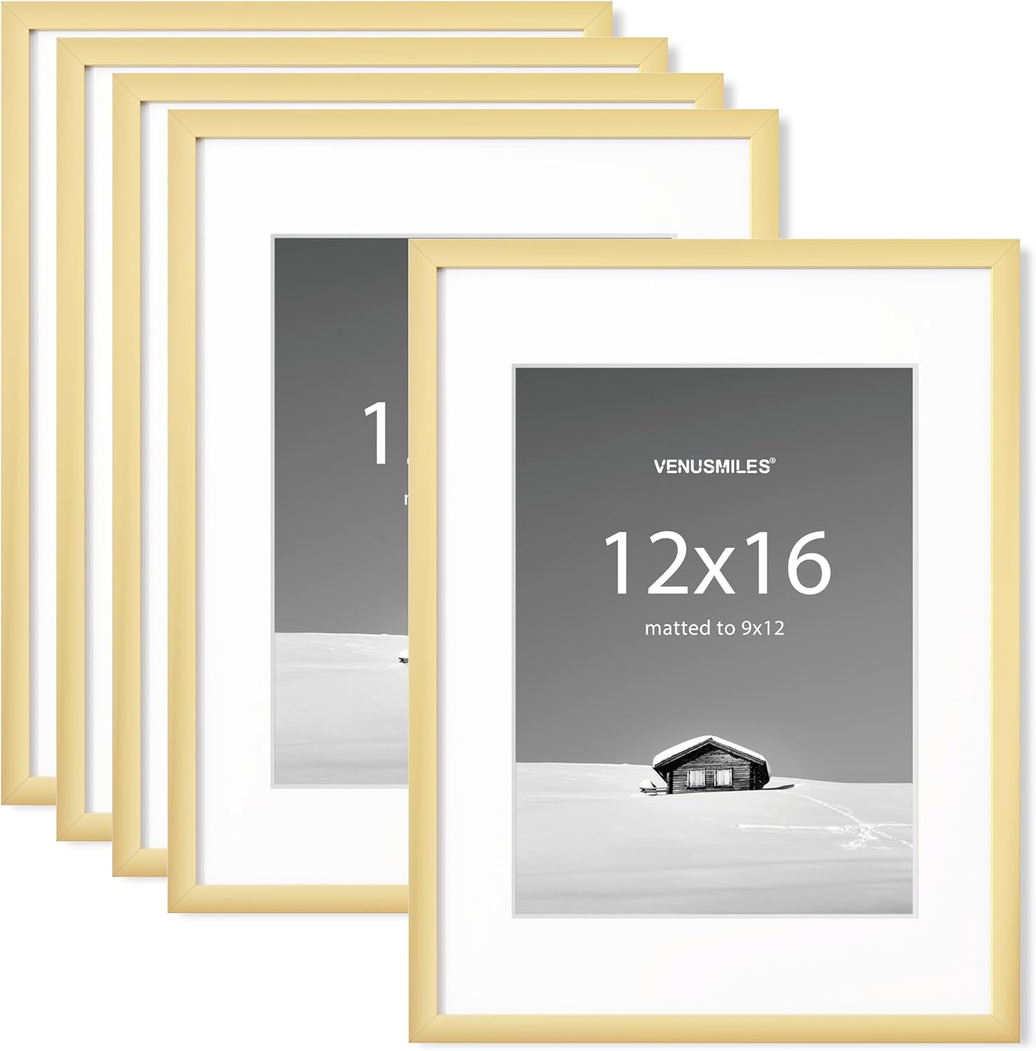 12x16 inch Picture Frame, 12x16 Photo Frames with 8.5x11 Removable Mat - High Definition Plexiglass - Vertical and Horizontal Display - Wall Hanging Frame - Gold, 5 Pack