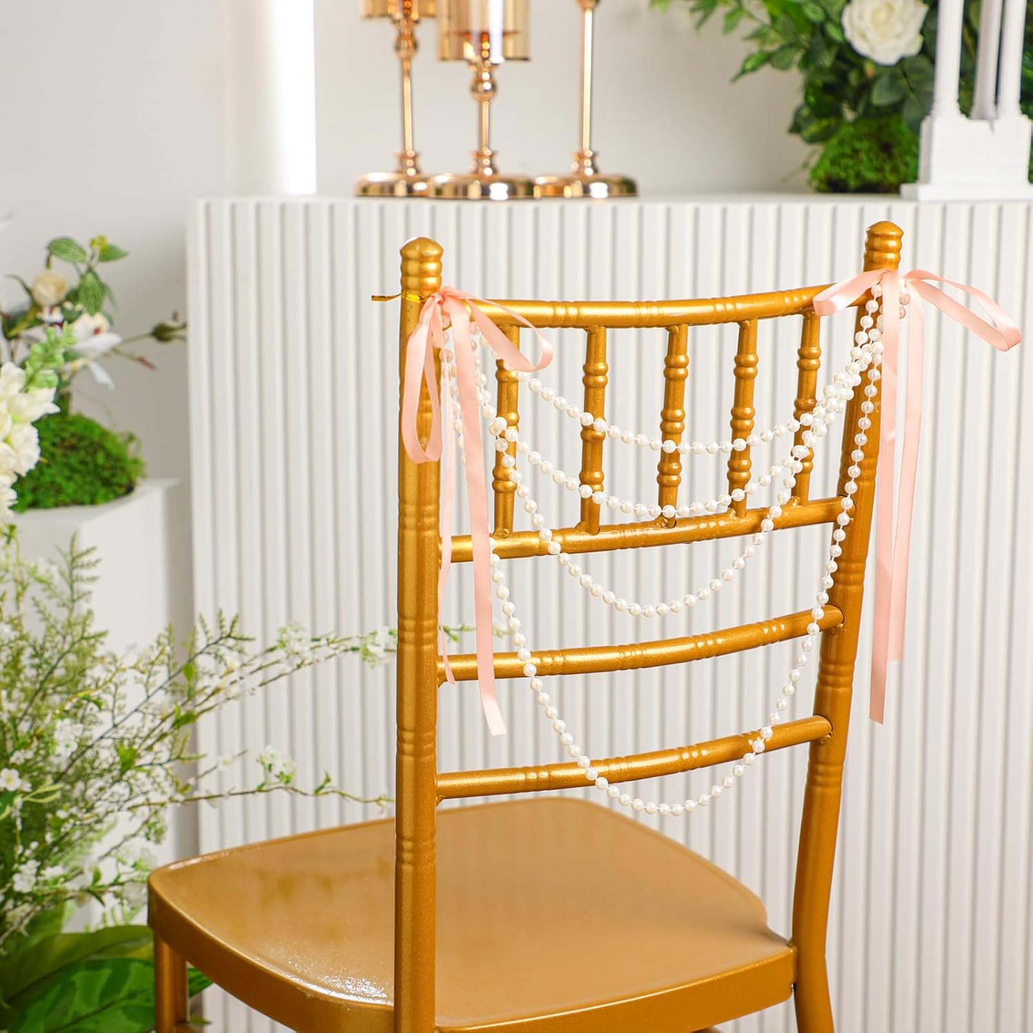 - Ideal Sized for Easy Application: the pre tied bows pearl string chair, measuring about 0.3 inch/ 7.5 mm in pearl's diameter and featuring about a width of 16 inches/ 40 cm and height of 12 inches/ 30.5 cm, is pre tied bows pearl string chair decorated for practicality; The champagne pink bows have an adjustable 43 inches/ 110 cm long ribbon, making them suitable for both indoor and outdoor settings without the worry of deformation or breakage