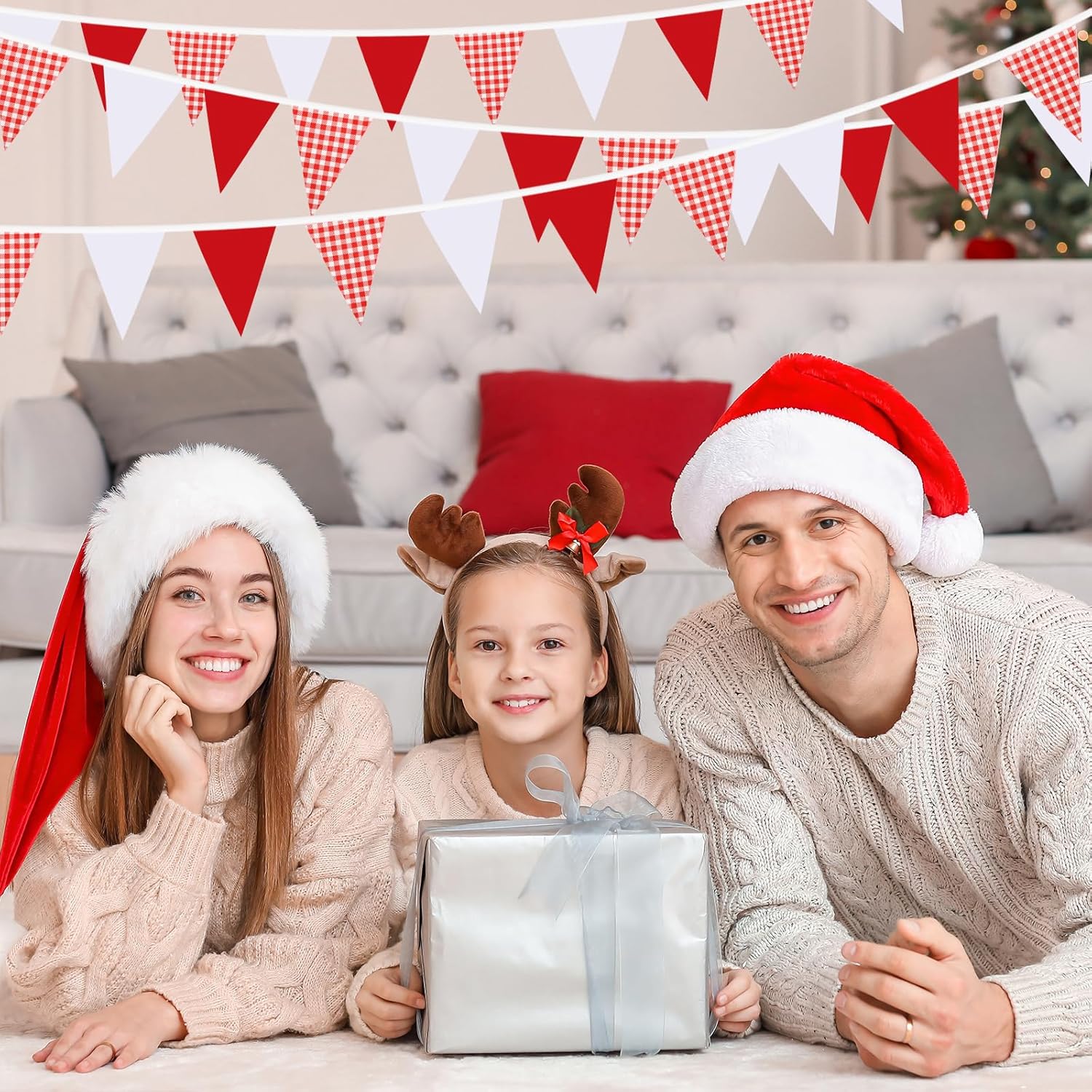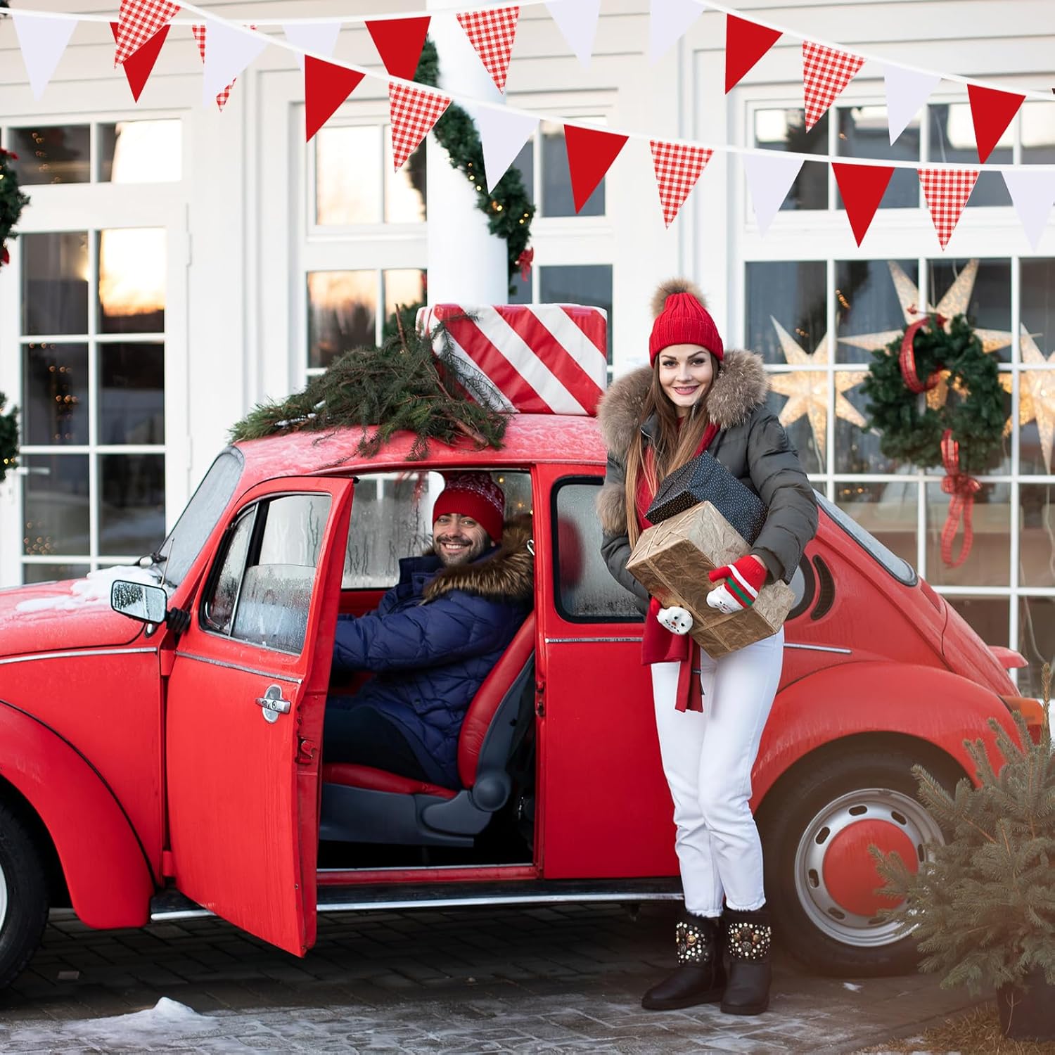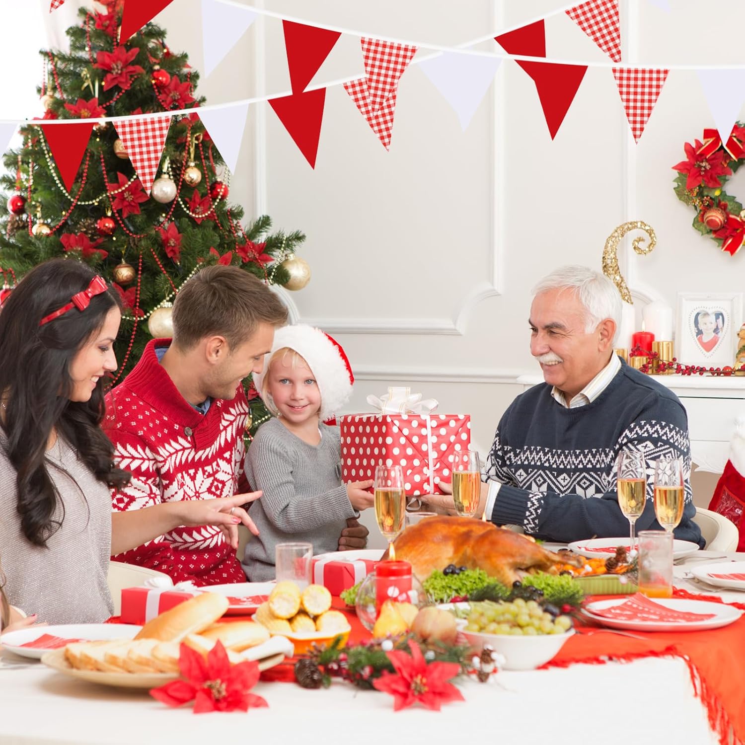 - Versatile Decoration: This 33-feet long garland with 30 red and white plaid pennants is perfect for adding a festive touch to weddings, birthdays, carnivals, Christmas, and outdoor home festivals.