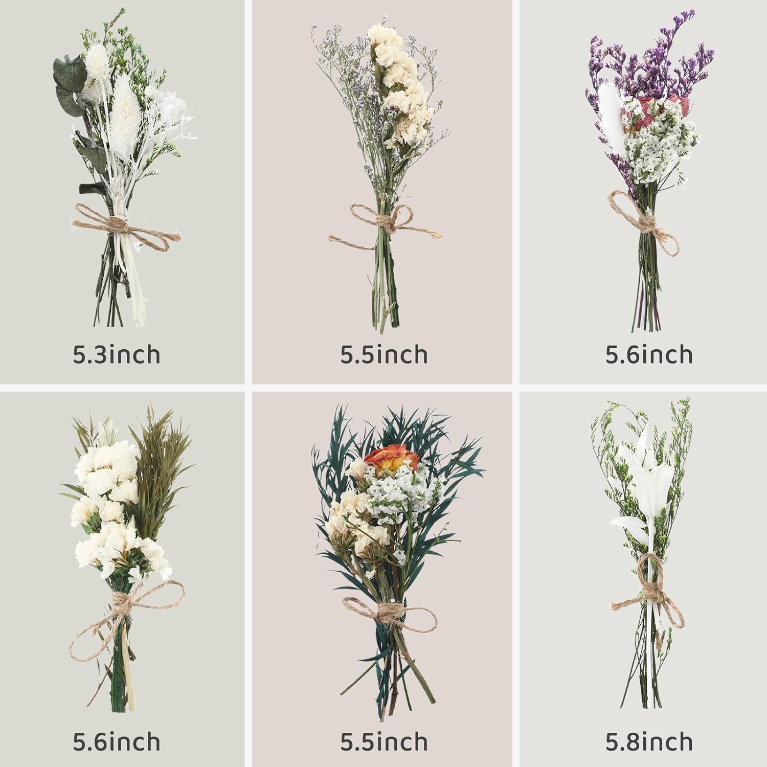 - Small and delicate: The bouquet is 5.3-5.9 inches (13-15 cm) long and delicate and lovely. The stems are firm and fit easily into vases. Compared with fresh flowers, dried flowers have a longer shelf life and are not easily wilted. Whether it is used for DIY handicrafts or packaged into mini bouquets, it can bring a lasting natural atmosphere to weddings, homes and other Spaces