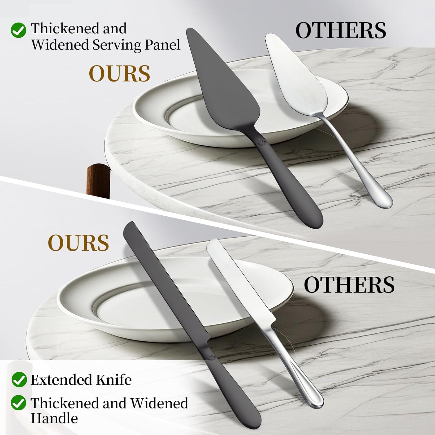 Cake Cutting Set for Wedding - Extended Cake Knife and Server Set Thickened Stainless Steel 13.0" Cake Cutter 10.49" Pie Spatula Great for Birthday Anniversary Christmas Gift 2 Pcs Matte Black