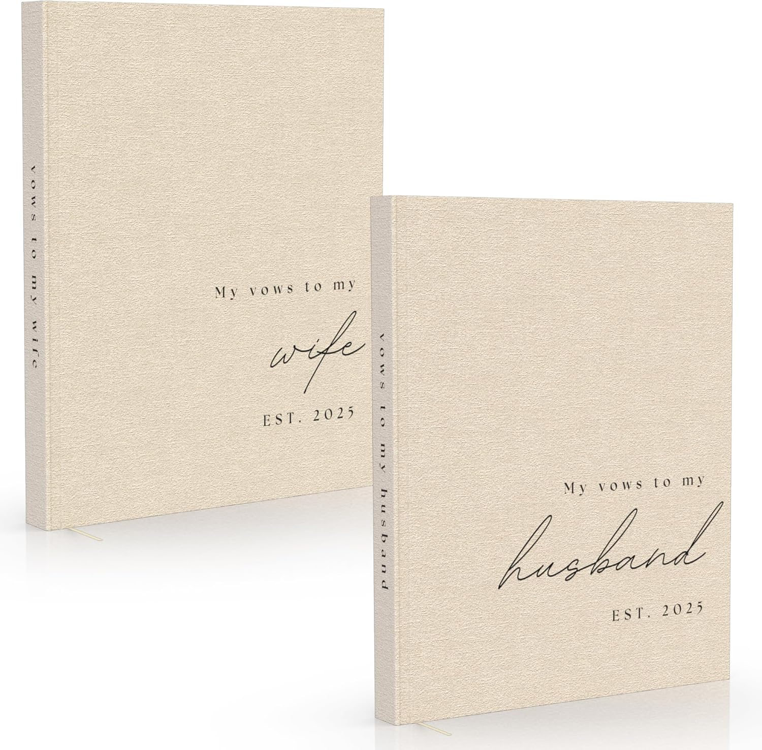 Wedding Vow Books His and Hers - 2 Pack Personalized 2025 Year His & Hers Book - Linen Hardcover Bride and Groom Notebook for Ceremony Vows - Bookmark & Lined Pages - Renewal & Wedding Must Haves