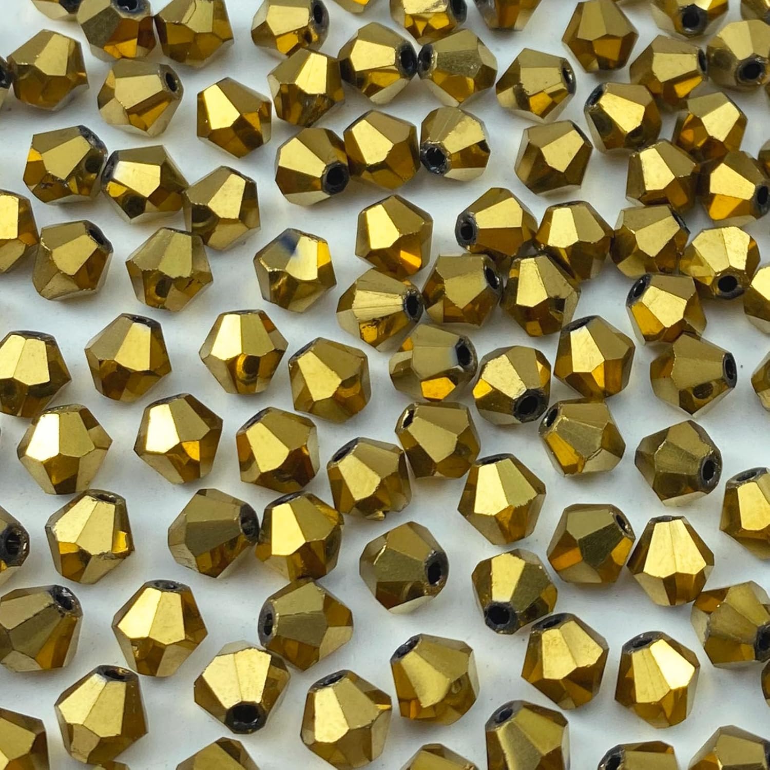 400pcs 4mm Bicone Crystal Glass Beads Loose Spacer Beads Faceted Craft Beads for Jewelry Making DIY Necklace Bracelet Earring Wind Chimes Suncatchers Ornamen(Mine Gold)