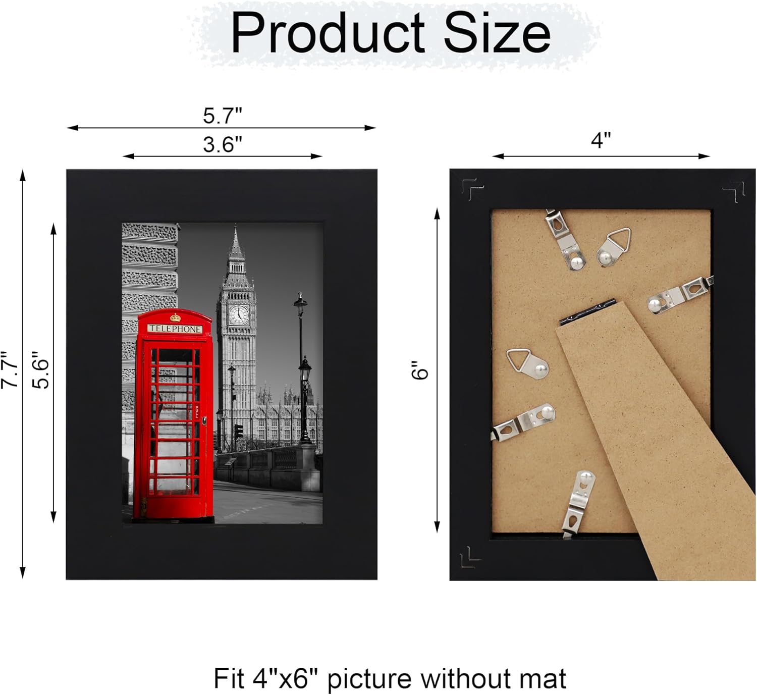 - Multi Frames Collage Set: Includes 4 frames in the same size. Perfectly fits 4x6 inch pictures without mat. The frame opening display size is 0.5 inches smaller than the photo size for secure mounting.