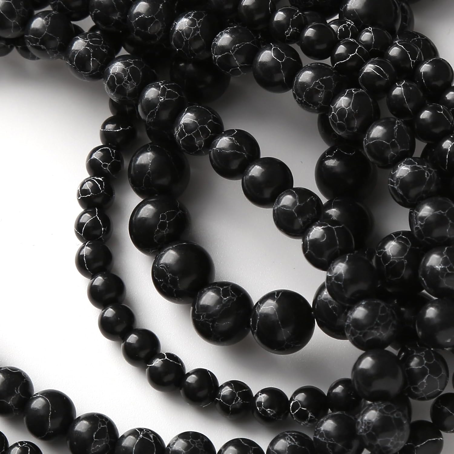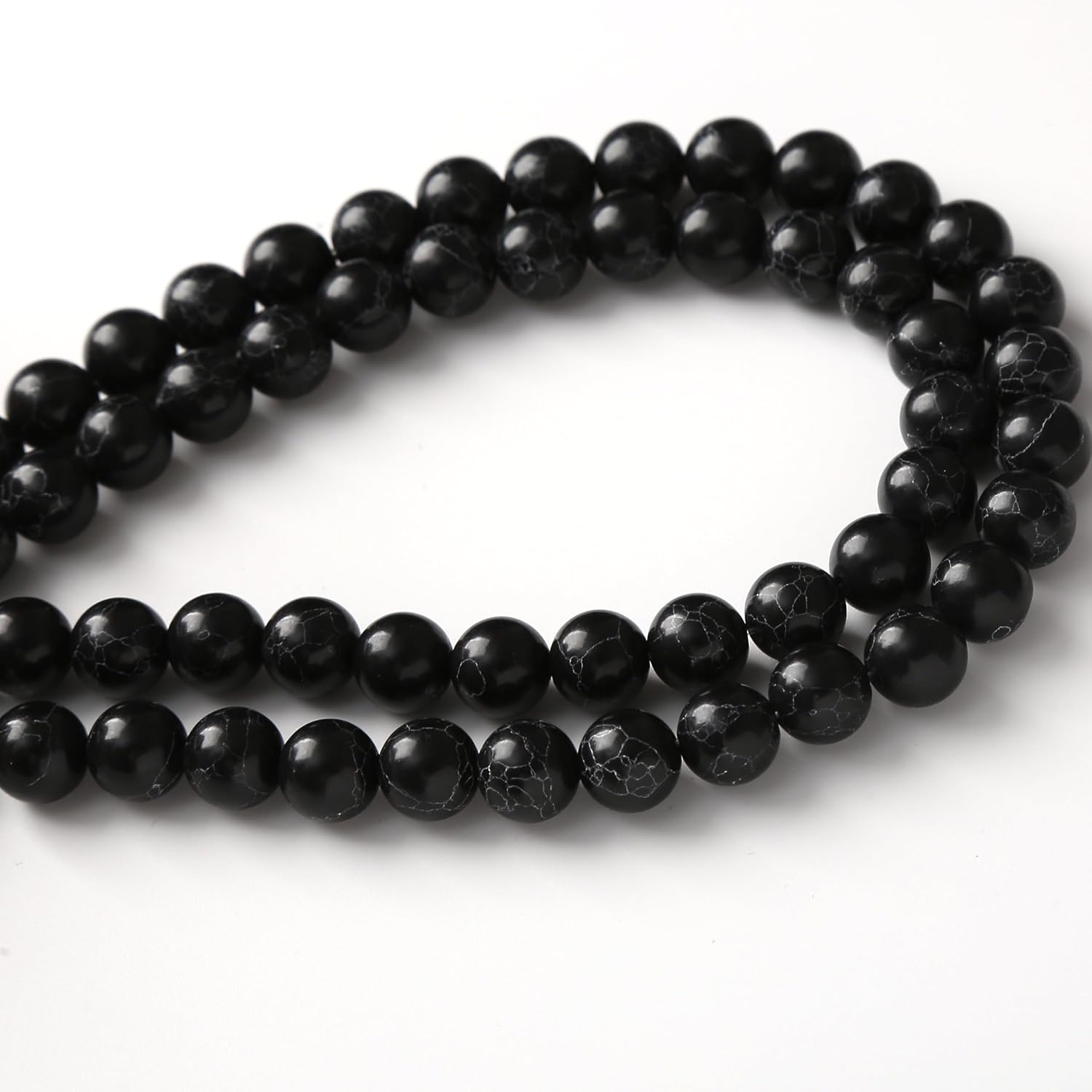 Black Turquoise Stone Beads 6MM Gemstone Round Crystal Energy Jade Beads for Jewelry Making DIY Bracelet Necklace Jewelry Making 1 Strand 15.5inch 60PCS 6MM
