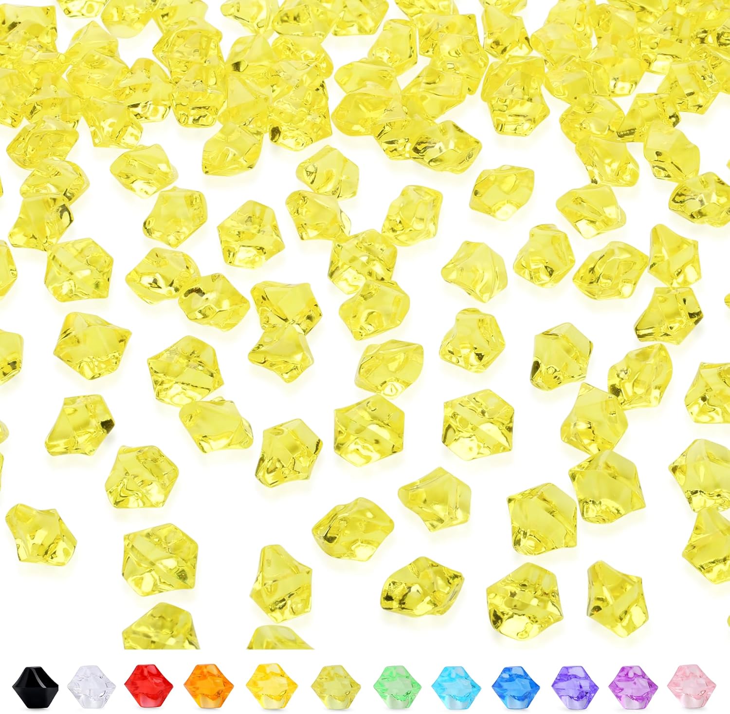 YATOJUZI 500pcs Fake Ice Cubes Yellow Acrylic Crushed Rocks Vase Fillers Plastic Diamonds Gems for DIY Party Wedding Centerpiece Table Scatter Prop Display 0.5" (Only Yellow)