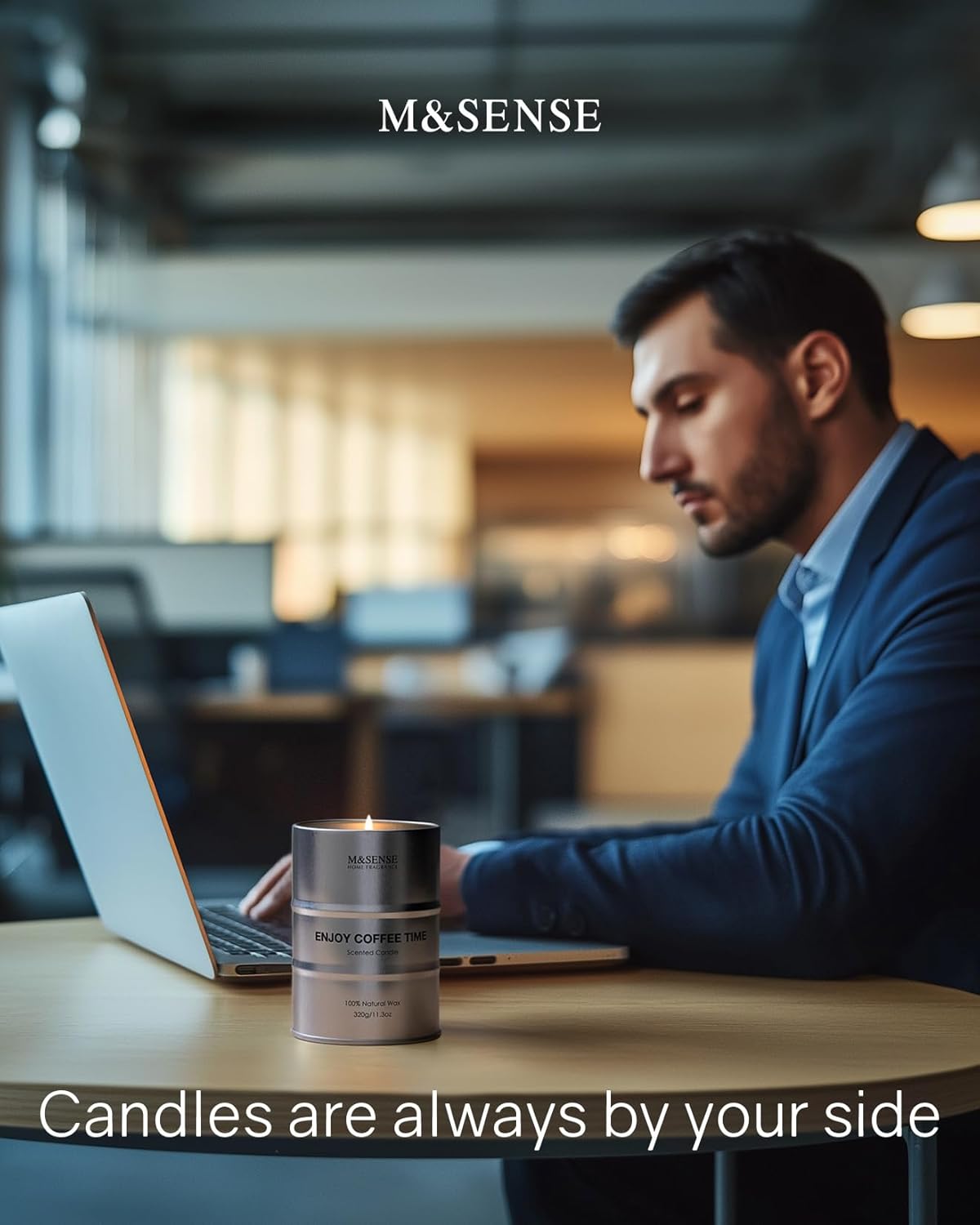 M&SENSE Scented Candle, Coffee Medium Jar Candle Gifts for Men, 70 Hours Slow Burning Natural Soy Candles 11.3oz, Stress Relief Aromatherapy Candles Home Decor, Valentines Day Gifts for Him