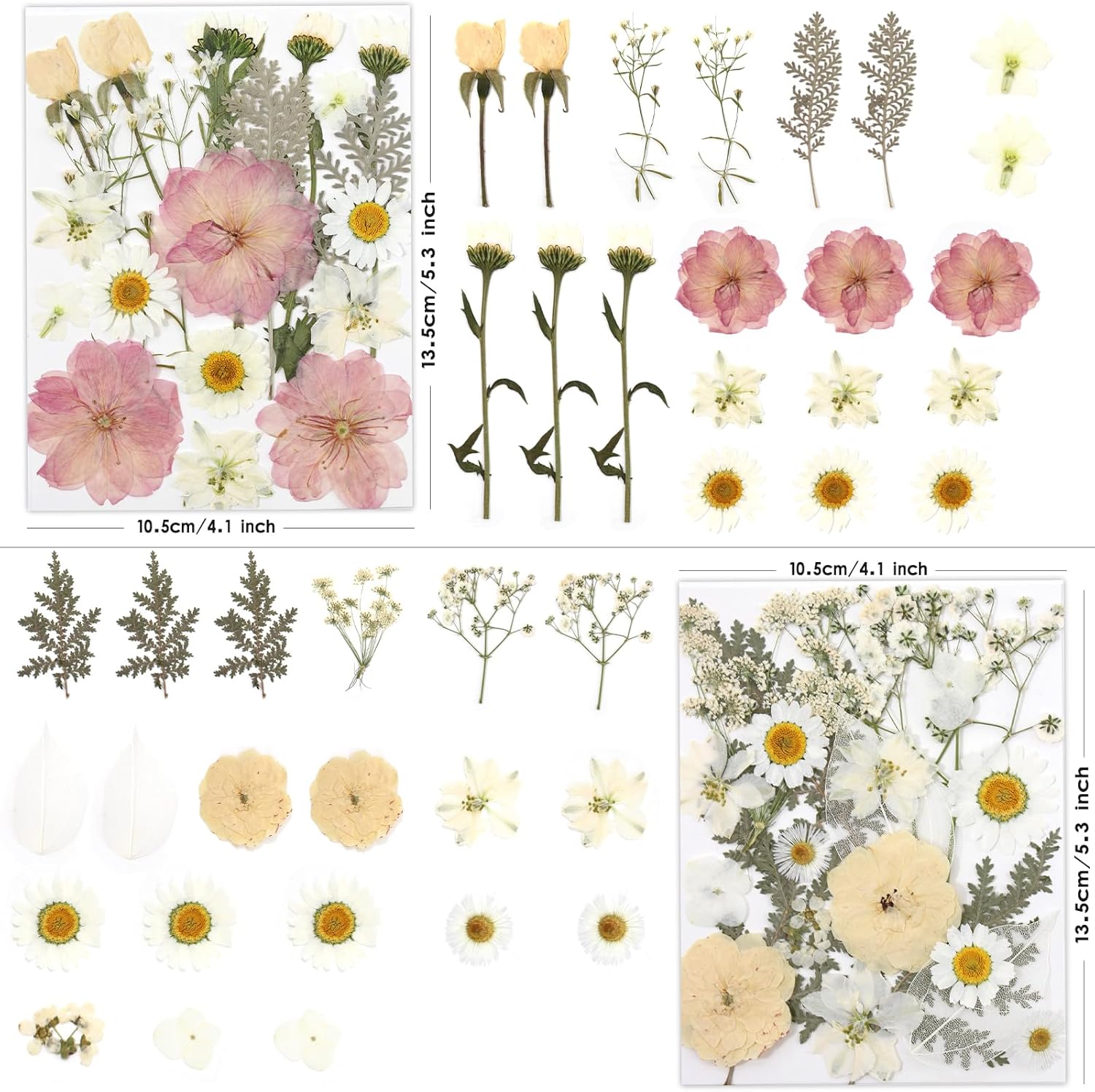 - Vibrant Natural Dried Flowers: A set of 80 dried pressed flowers for crafts flaunts soft yellow, white & pink hues. Carefully selected, naturally preserved, they keep their allure. Ideal for resin art, jewelry - making, scrapbooking & DIY