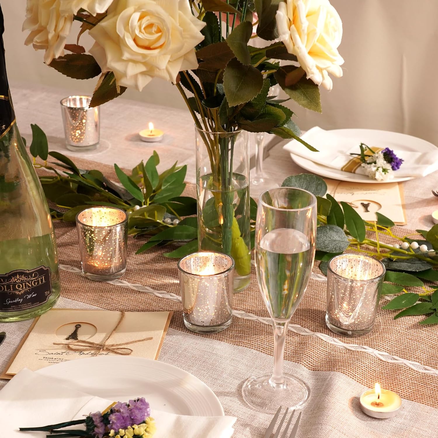 - Elevate Your Ambiance: Our stunning set of 24 silver mercury glass votive candle holders adds a dazzling touch to any setting. Light them up to watch the flickering glow dance, creating a cozy and elegant atmosphere perfect for gatherings, romantic dinners, or peaceful meditation