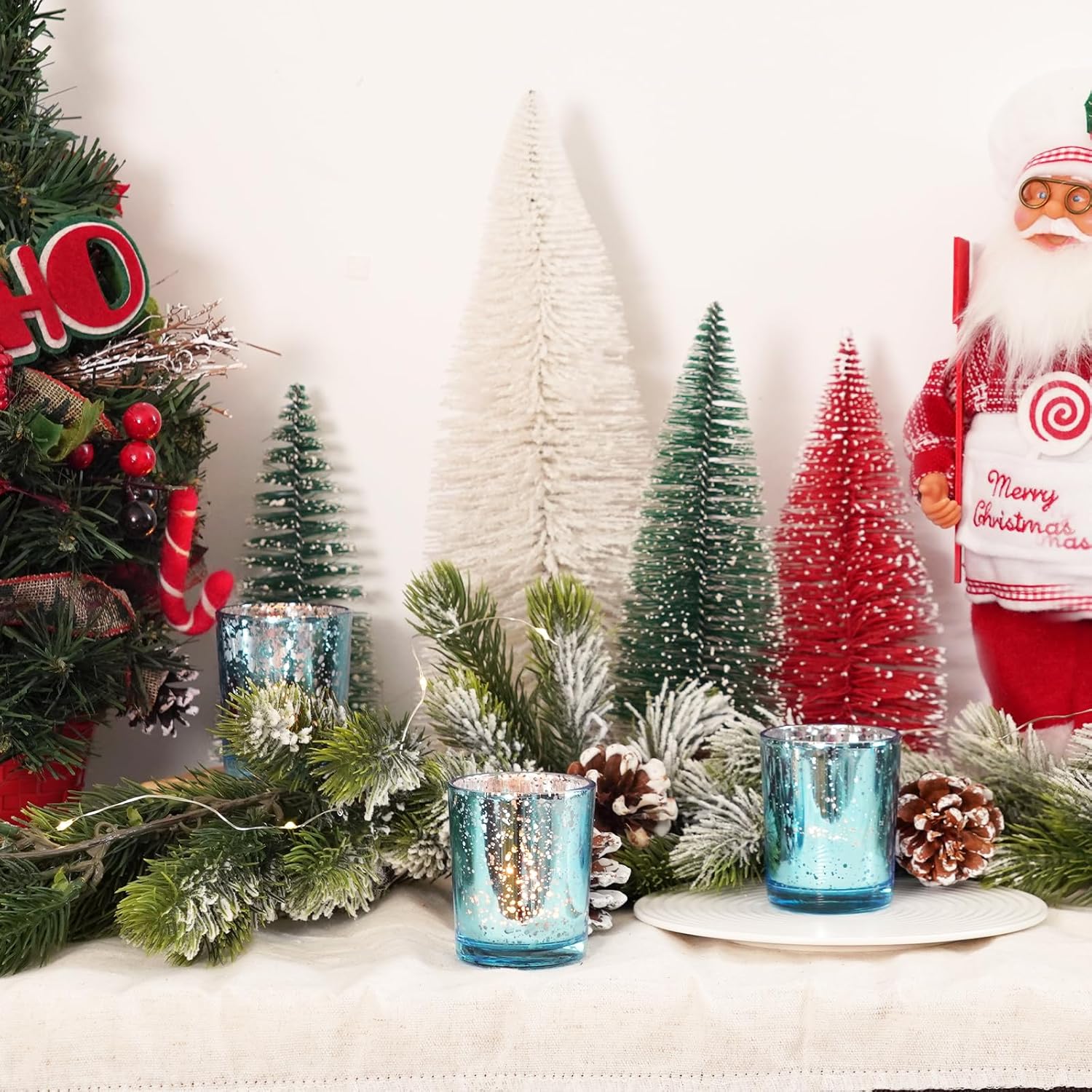 Homemory 24 Pcs Blue Votive Candle Holders, Mercury Glass Candle Holder, Tealight Candle Holders for Table Centerpieces, Baby Shower, Party, Anniversary, Wedding, Home Decor, Halloween, Christmas