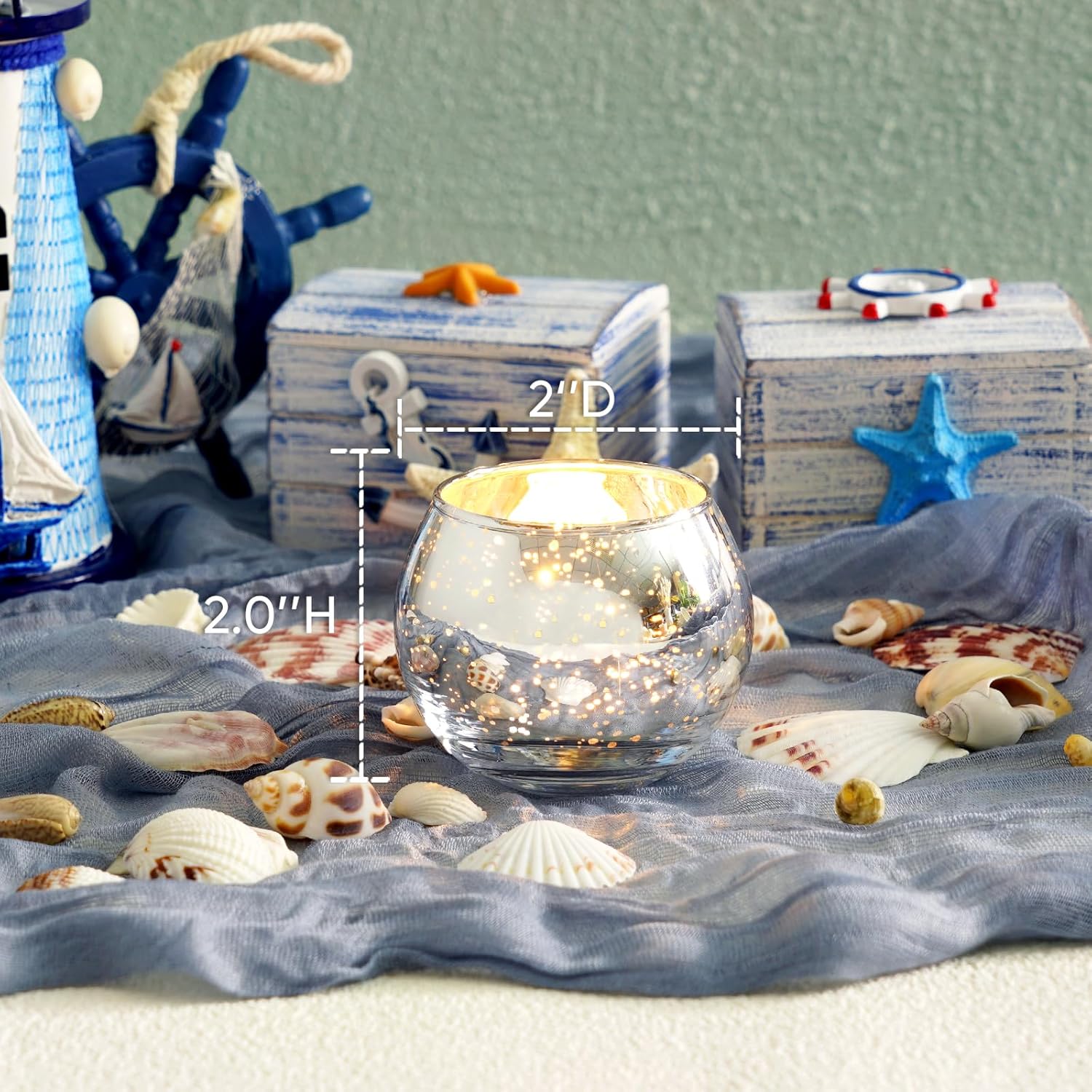 Homemory 12 Pcs Silver Votive Candle Holders, Round Mercury Glass Candle Holder, Tealight Candle Holders for Table Centerpieces, Baby Shower, Anniversary, Wedding, Home Decor, Halloween, Christmas