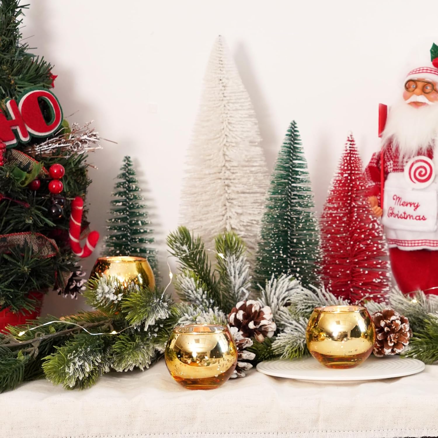 Homemory 12 Pcs Gold Votive Candle Holders, Round Mercury Glass Candle Holder, Tealight Candle Holders for Table Centerpieces, Baby Shower,Anniversary, Wedding, Home Decor, Halloween, Christmas