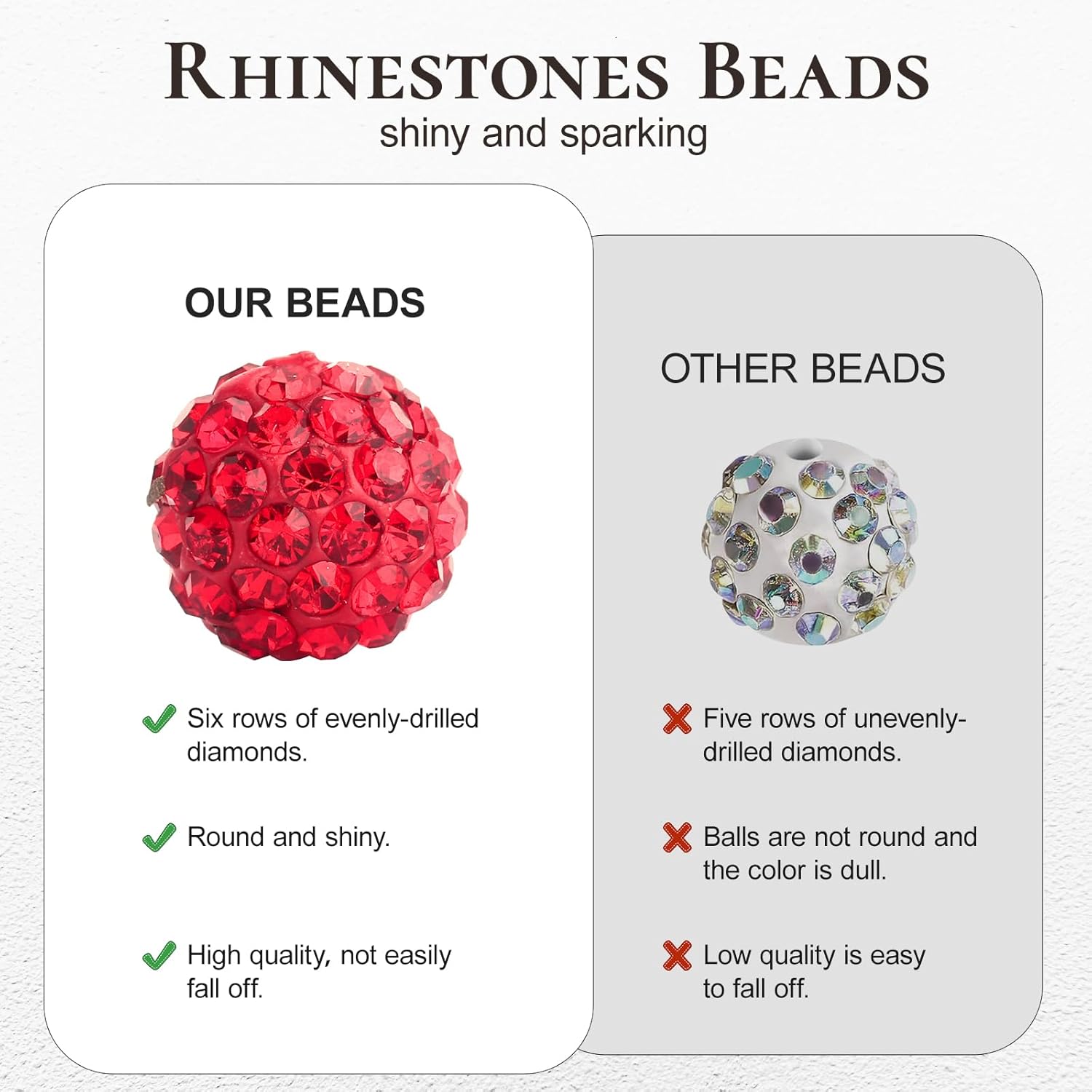 - UNIFORM RHINESTONE BALLS: Round clay beads are decorated with six rows of full diamonds, and high-quality glass rhinestones are evenly distributed on the surface of the sphere, giving the overall visual layering of the beads. The beautifully shaped clay rhinestone beads are as colorful as disco balls, making the handmade jewelry richer.