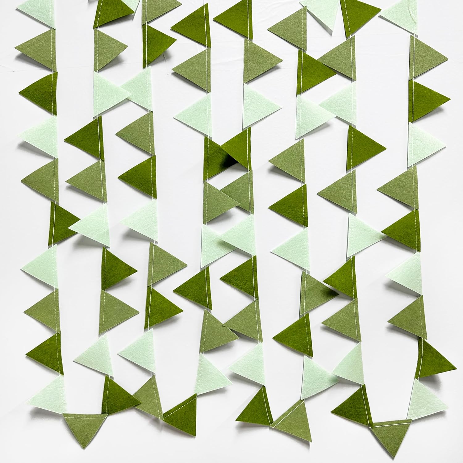 - Easy Assembly - Easy hanging and reusable.Perfect fit for olive green party decor.unroll and unwrap garland carefully. due to delicate nature of thread,may tangle.This ombre sage green mini triangle pennant makes an attractive backdrop for videos and photos.